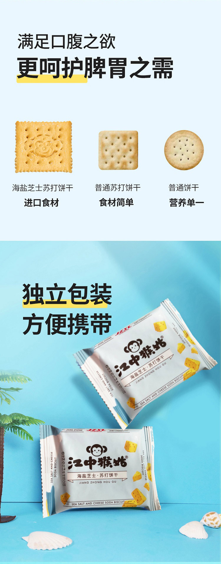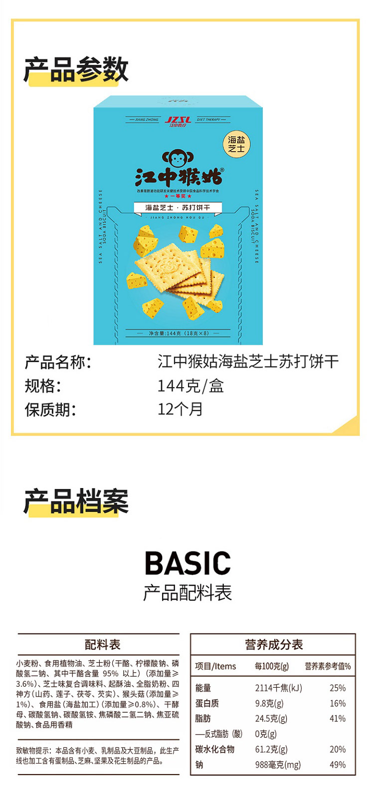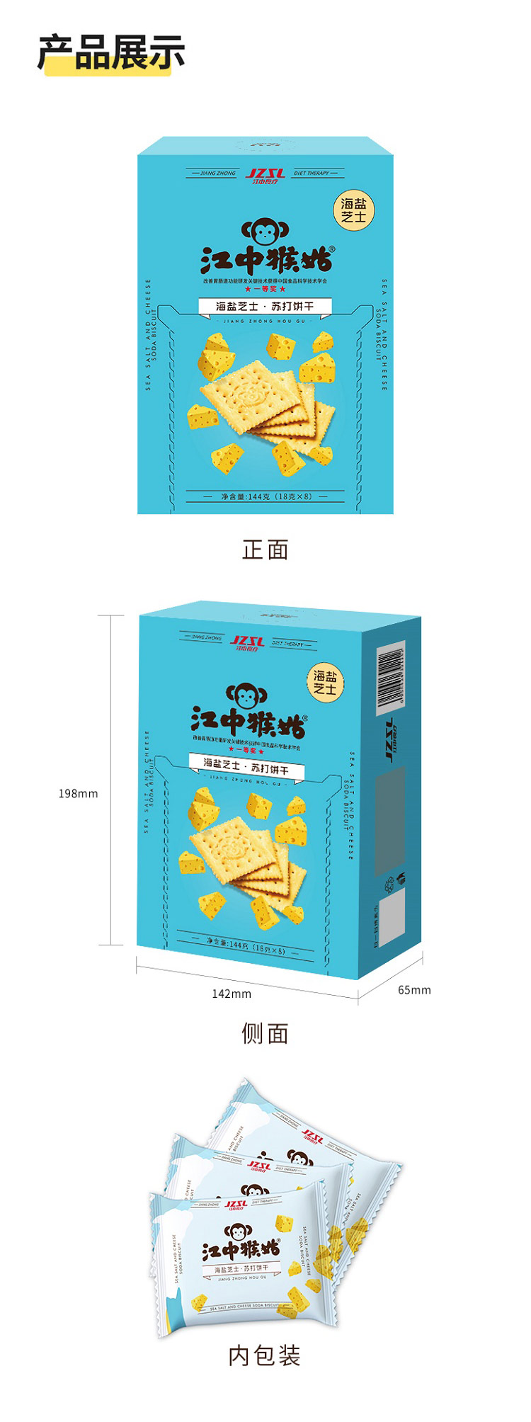 商品名称:江中猴姑海盐芝士苏打饼干144g*5盒