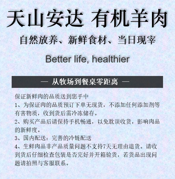 商品名称:【京东/德邦配送】天山安达巴音布鲁克草原黑头羊羊肉