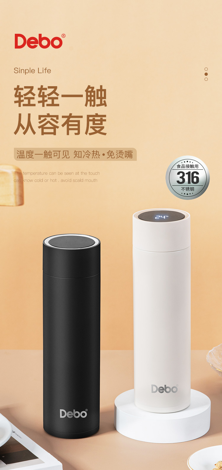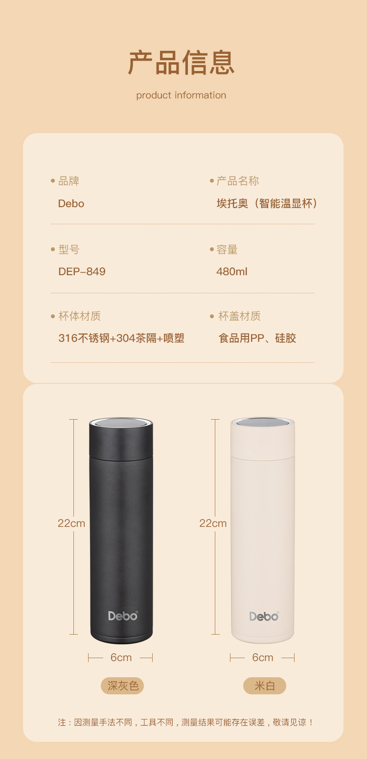 商品名称:Debo/德铂480毫升埃托奥智能温显杯DEP-849