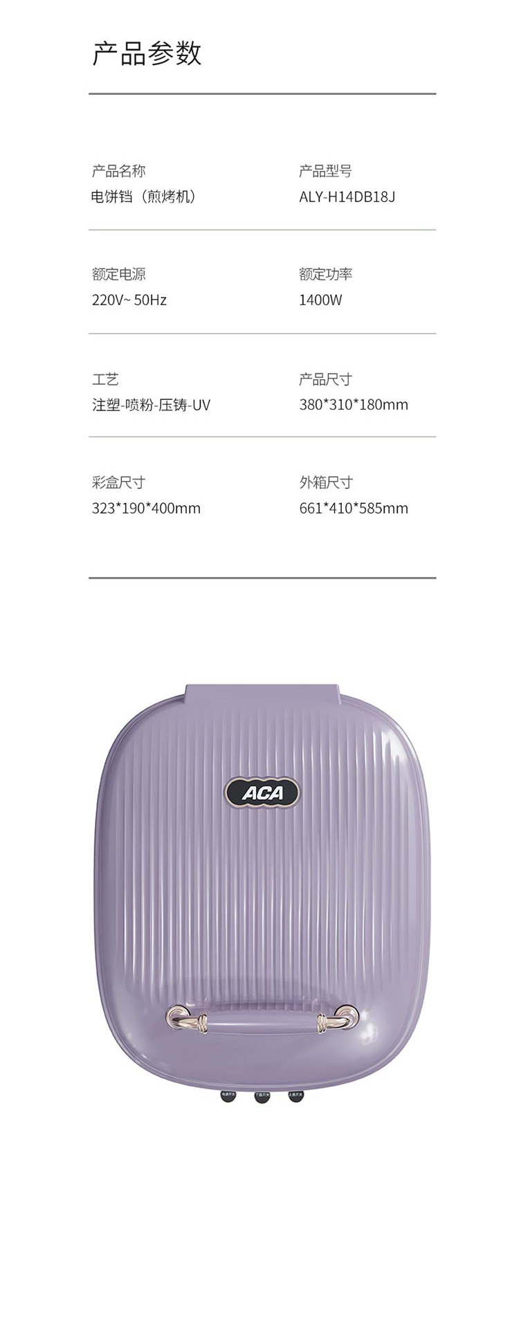 商品名称:ACA/北美电器电饼铛ALY-H14DB18J