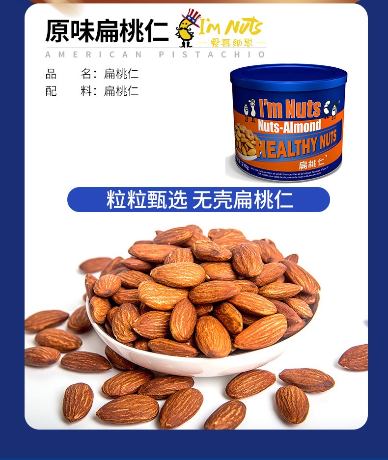 商品名称:爱慕纳思扁桃仁铁罐装270g*2罐