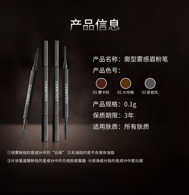 商品名称:COLORKEY/珂拉琪廓型雾感眉粉笔0.1g*3支