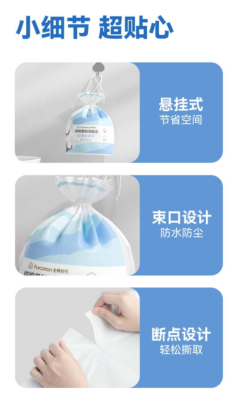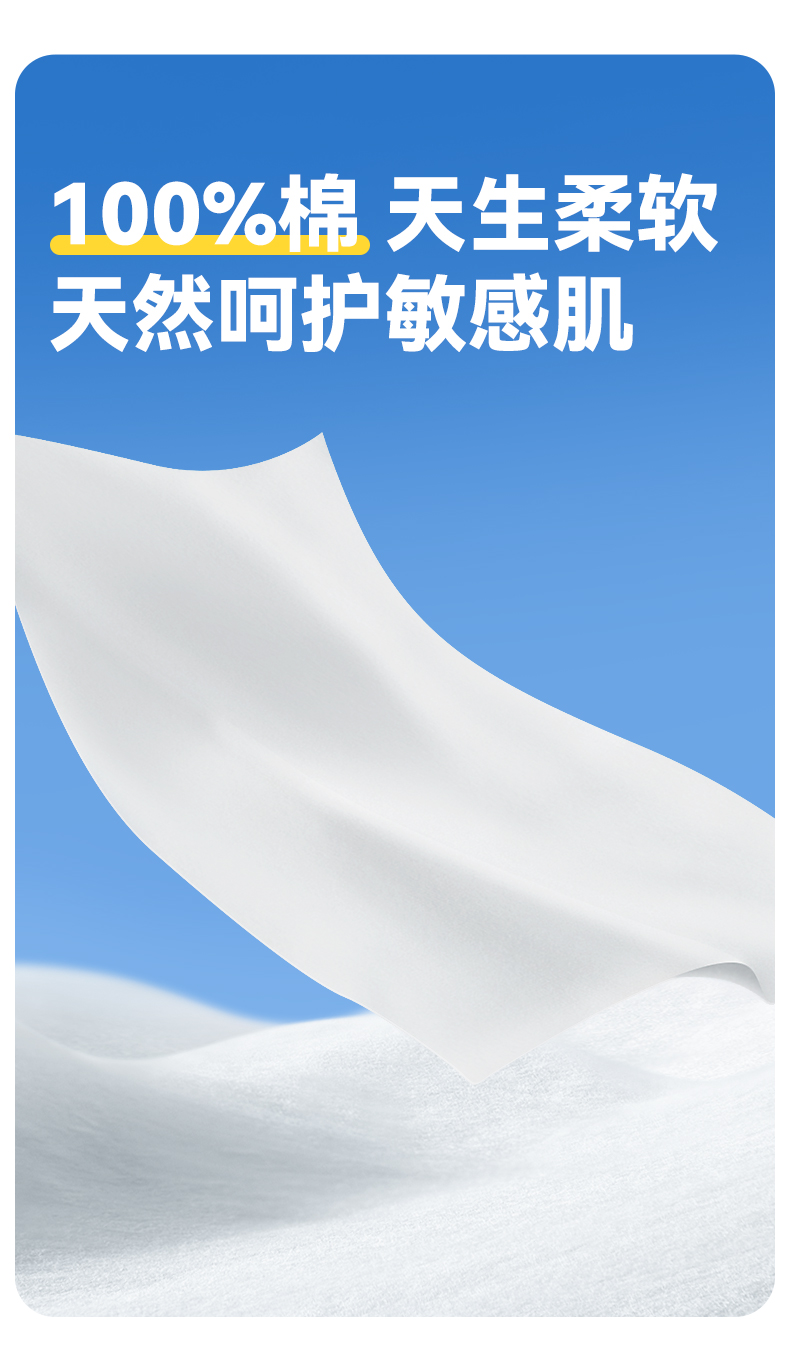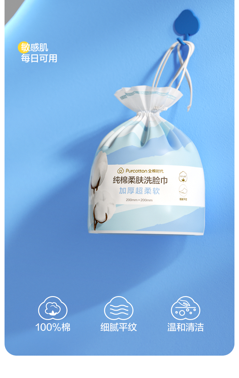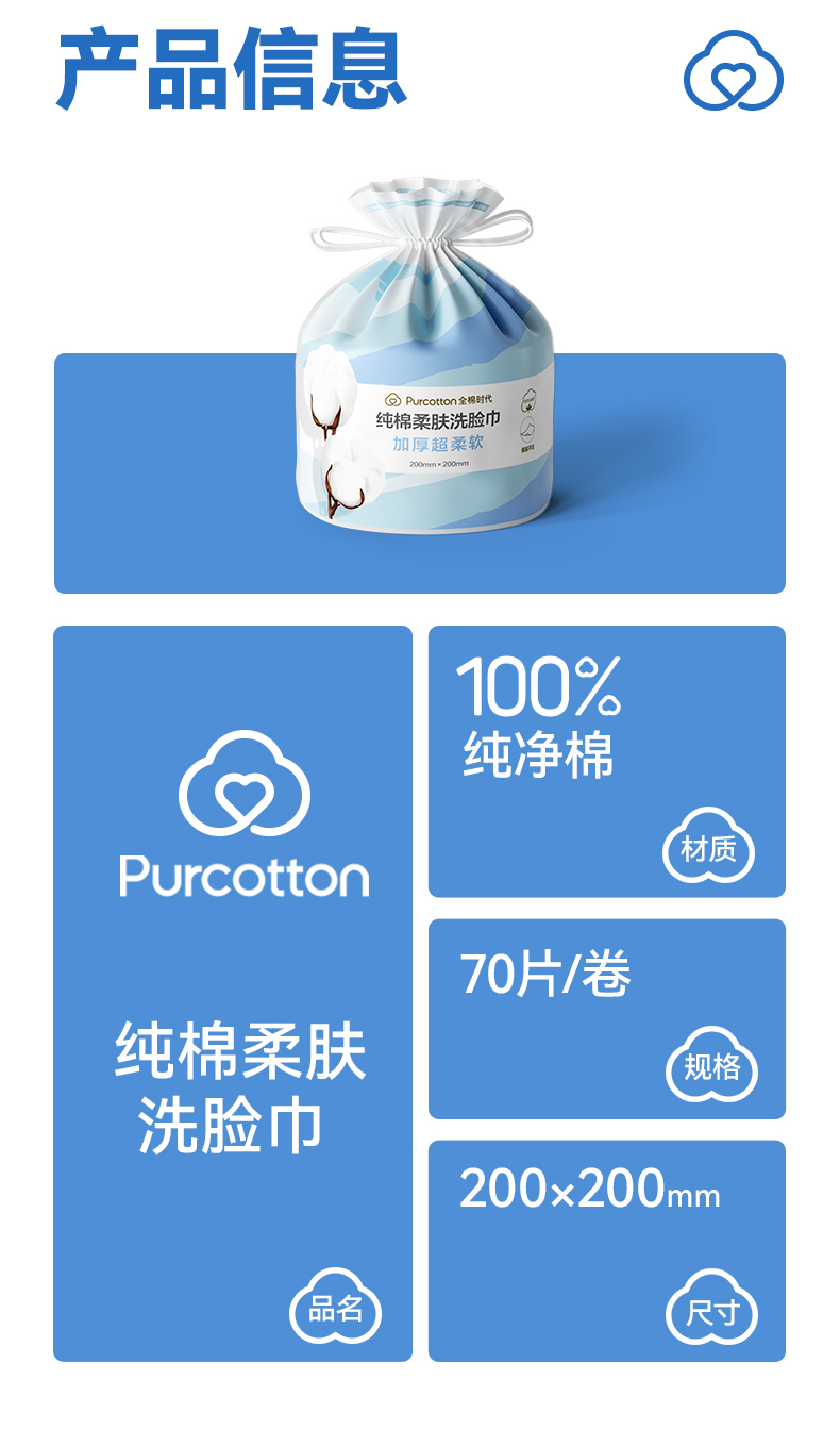 商品名称:Purcotton/全棉时代纯棉柔肤洗脸巾70片*2卷