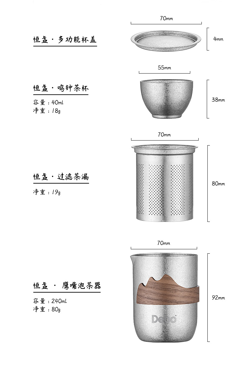 商品名称:Debo/德铂结晶恒盏钛杯套装DEP-DS372