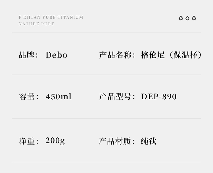 商品名称:Debo/德铂450毫升格伦尼保温杯DEP-890
