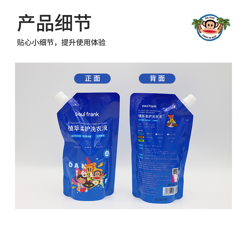 商品名称:paul frank/大嘴猴植萃柔护洗衣液500g*5袋