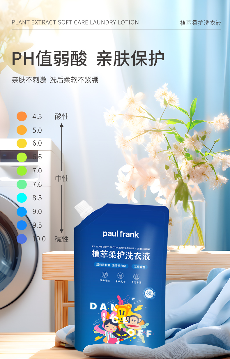 paul frank/大嘴猴植萃柔护洗衣液500g*5袋