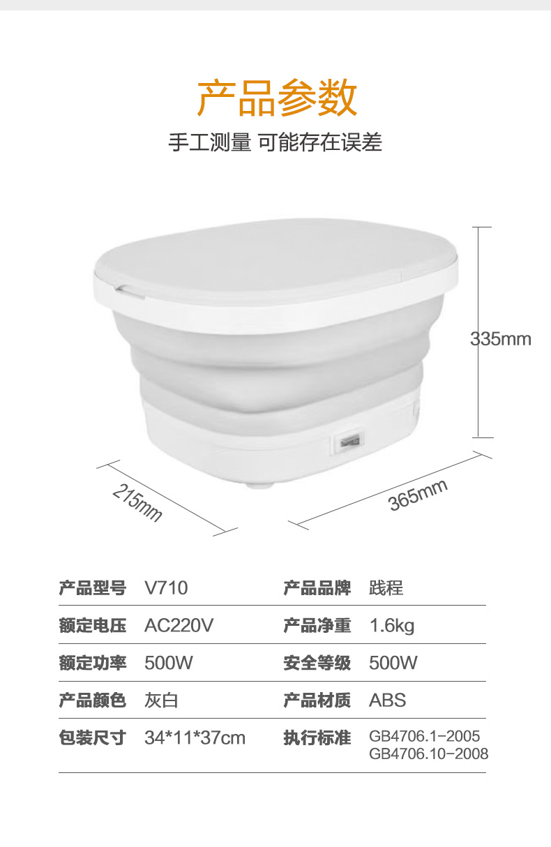 商品名称:JeoyCosy/践程折叠足浴盆V710
