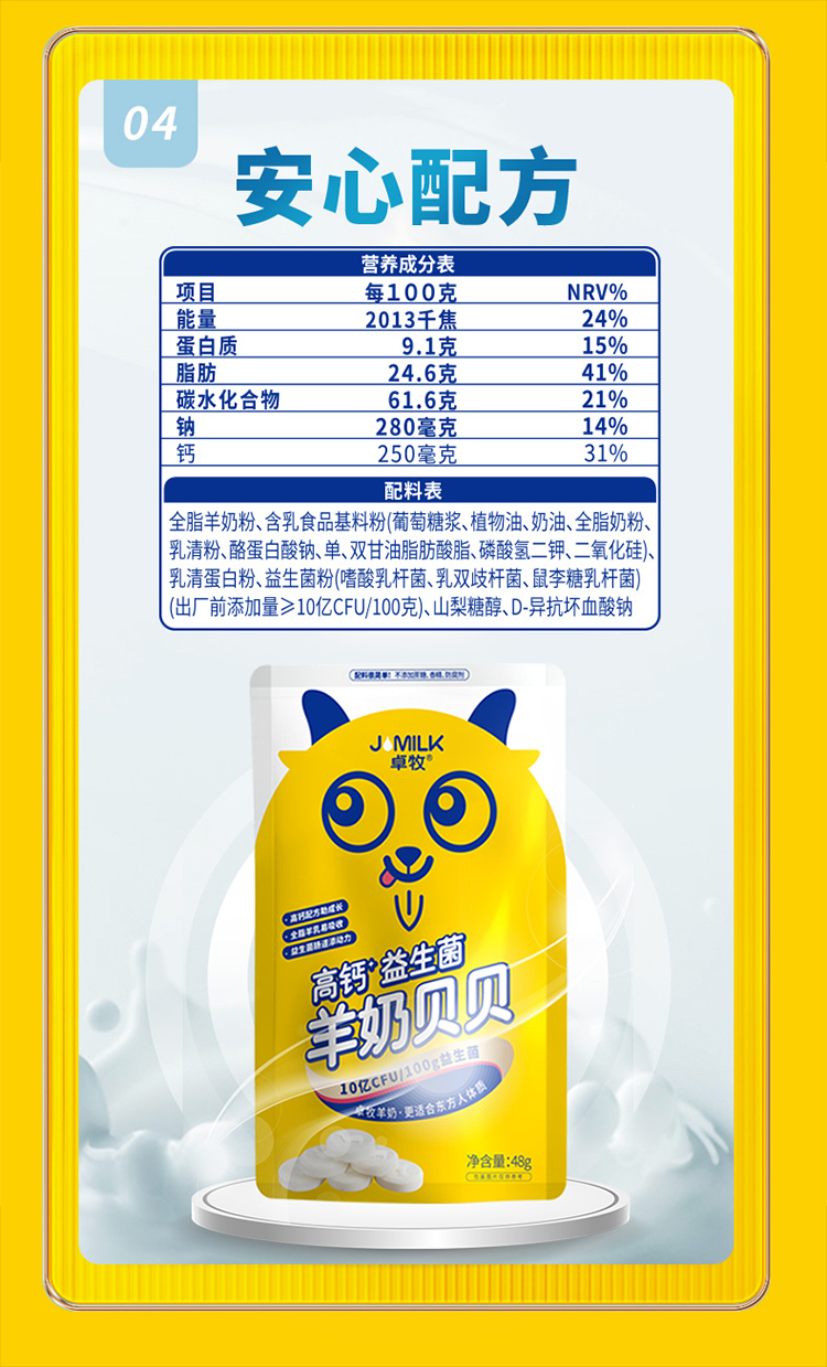 商品名称:卓牧益生菌羊奶片48G