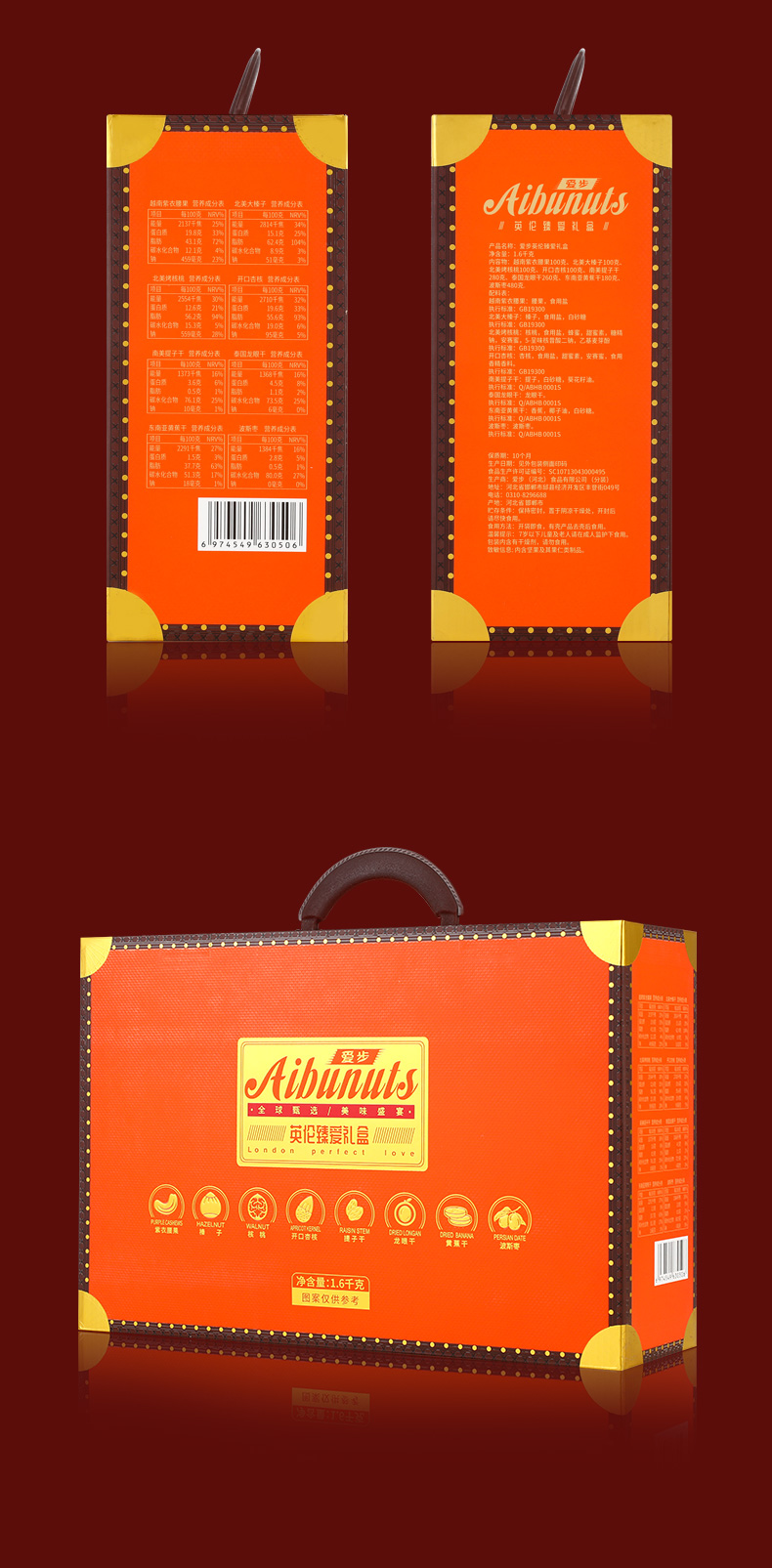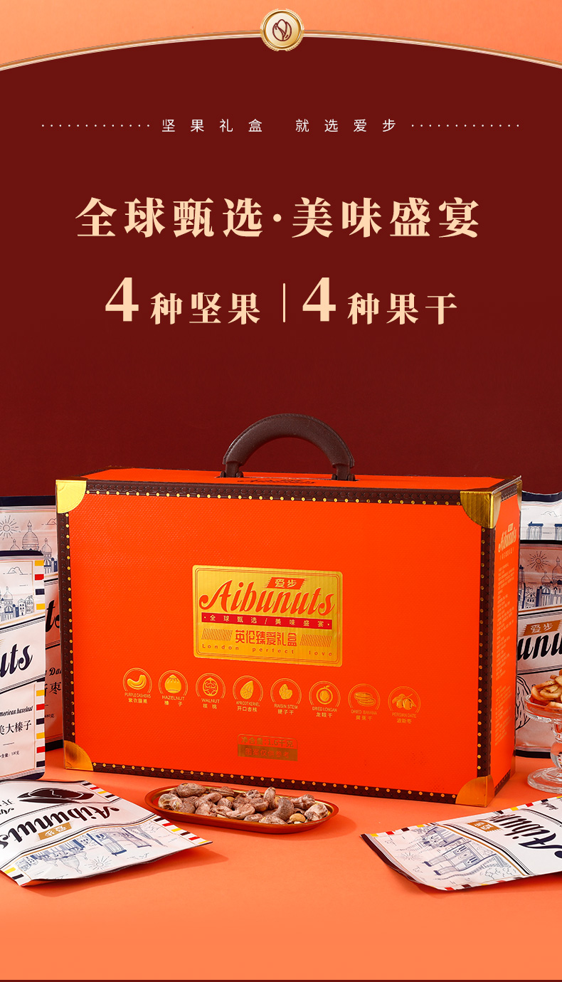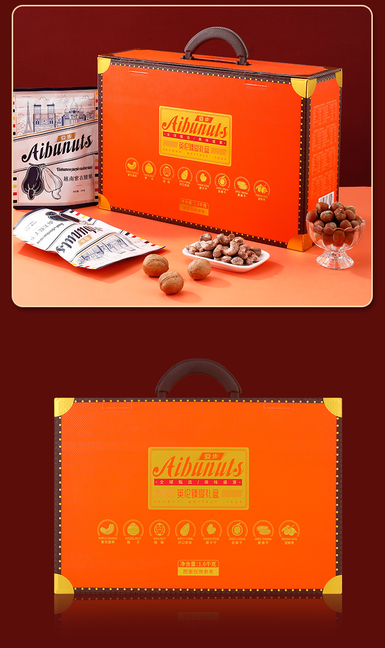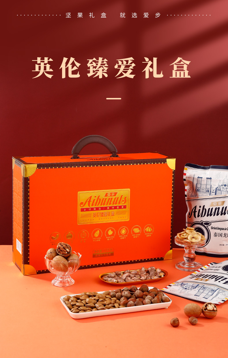 商品名称:aibu/爱步英伦臻爱坚果果干礼盒1600g
