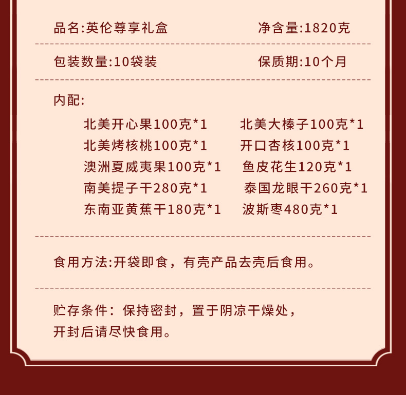 商品名称:aibu/爱步英伦尊享坚果果干礼盒1820g