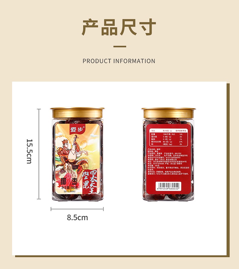 商品名称:aibu/爱步椰枣罐装500g*2罐