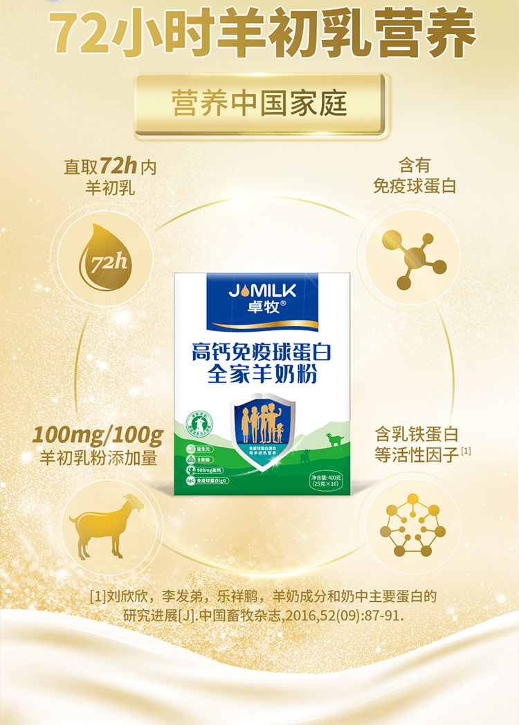 商品名称:卓牧高钙免疫球蛋白羊奶粉400g