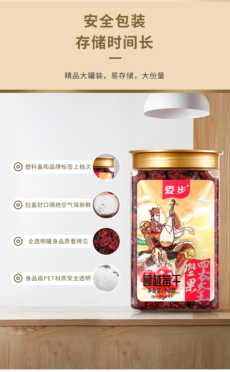 商品名称:aibu/爱步蔓越莓干罐装500g*2罐