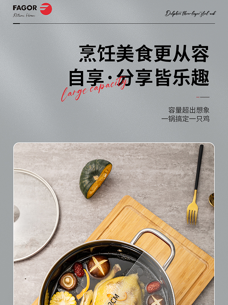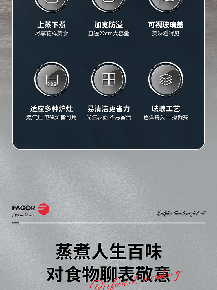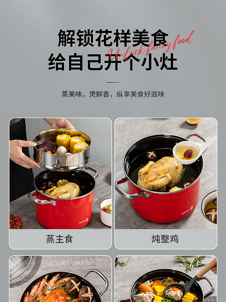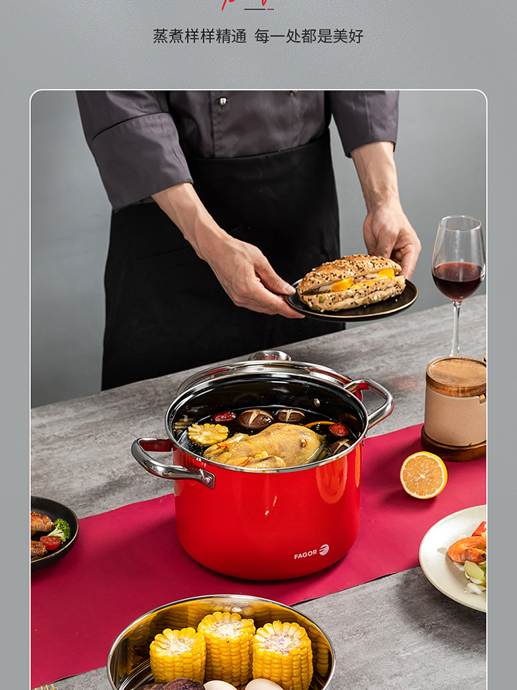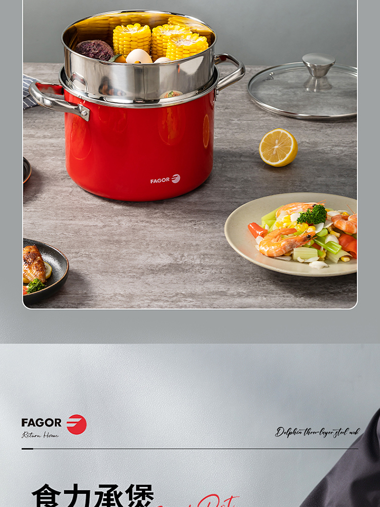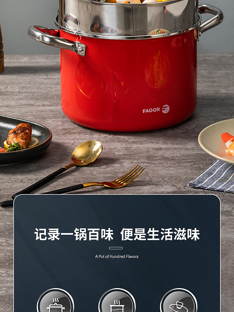 FAGOR/法格22cm红典系列珐琅蒸煮锅FG-HHD22ZZG