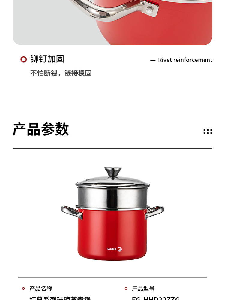 商品名称:FAGOR/法格22cm红典系列珐琅蒸煮锅FG-HHD22ZZG