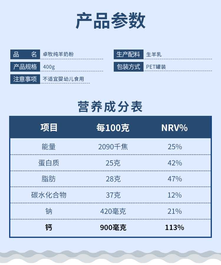 商品名称:卓牧纯羊奶粉400g