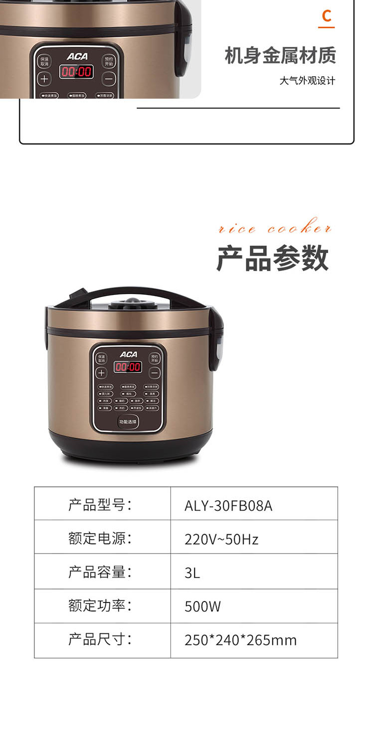 商品名称:(WS)ACA/北美电器3升微电脑电饭煲ALY-30FB08A