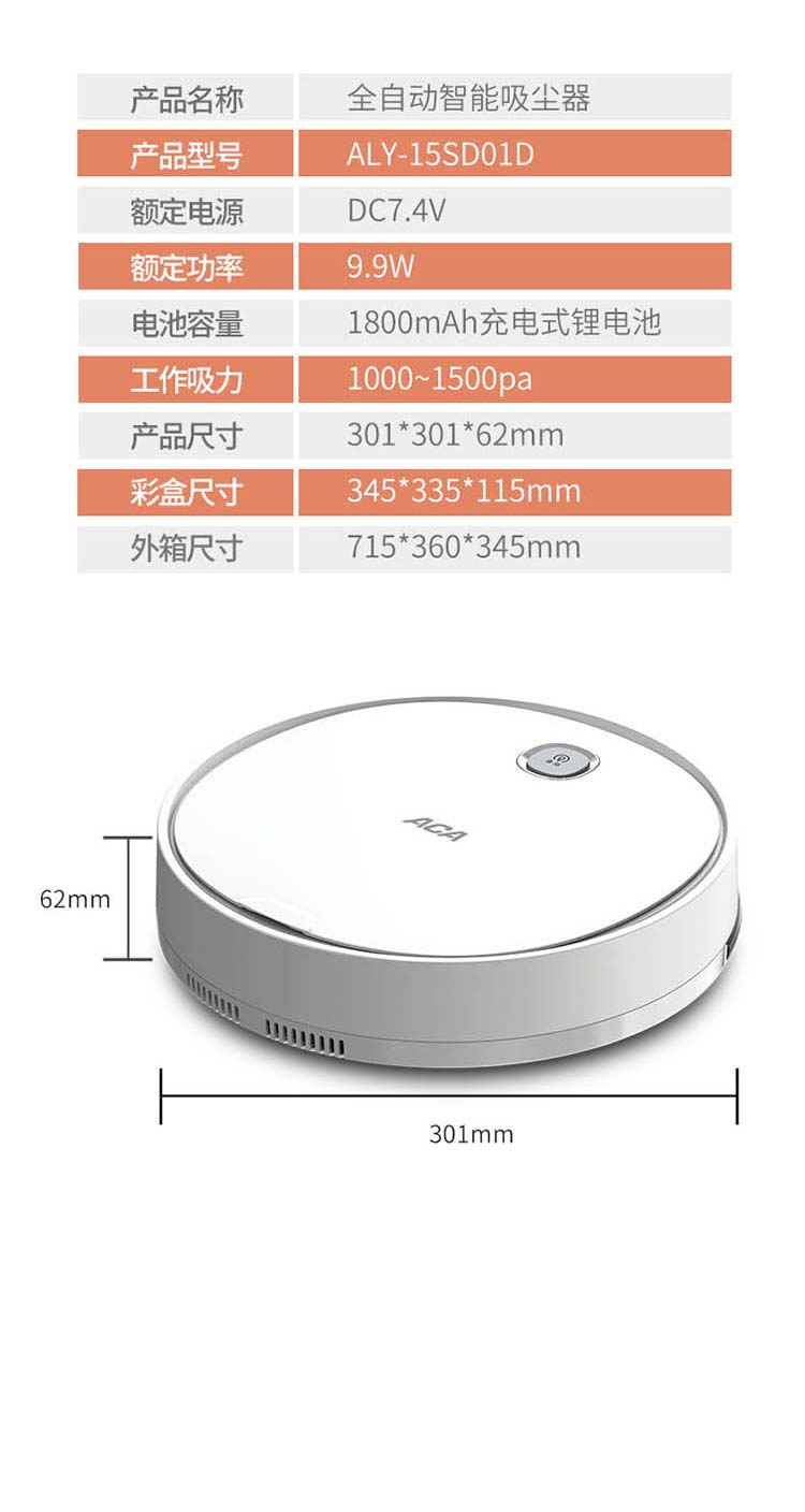 商品名称:【京东/顺丰/德邦配送】ACA/北美电器全自动智能吸尘器ALY-15SD01D