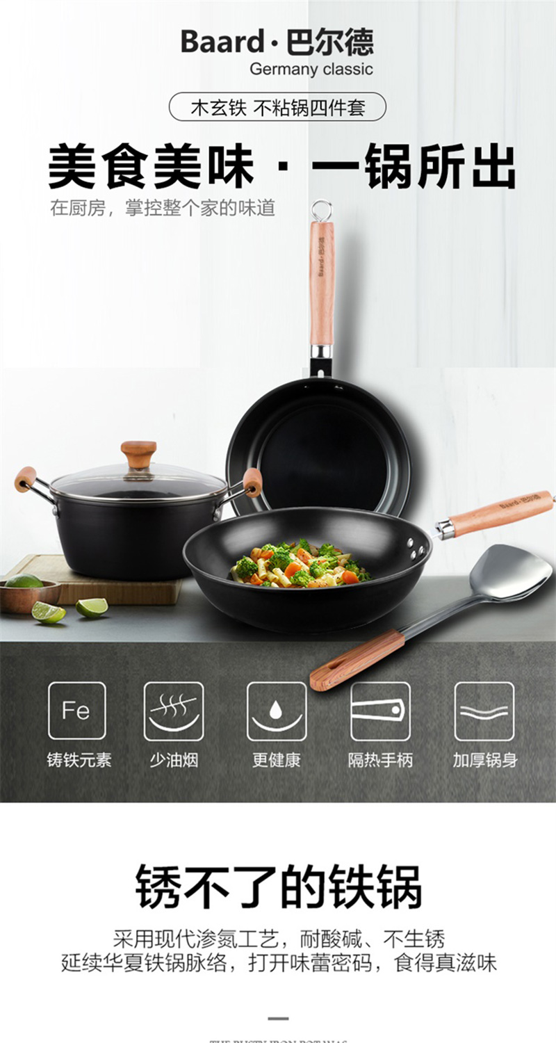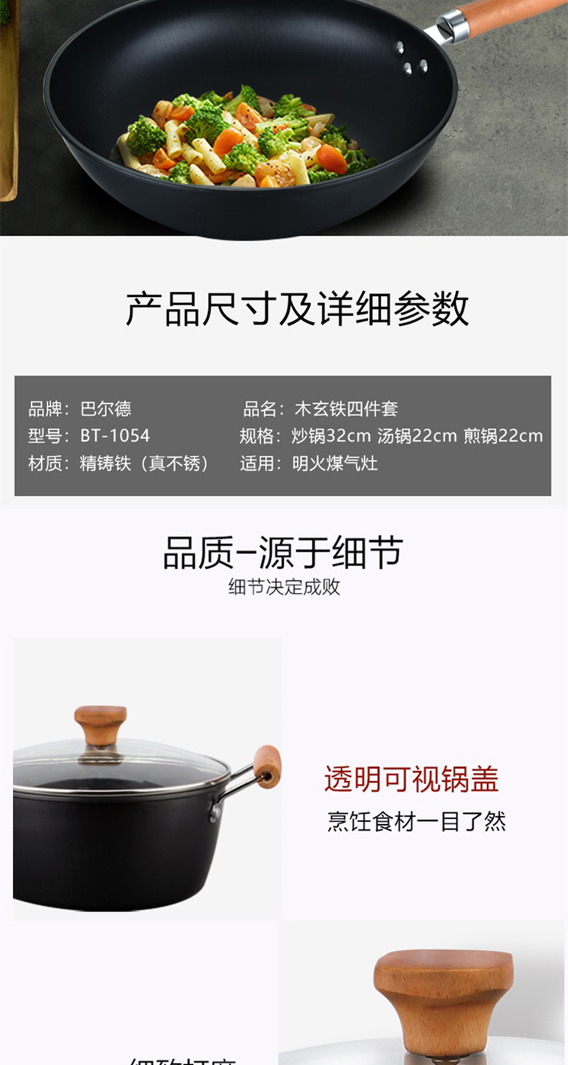 商品名称:TI-BRO/巴尔德木玄铁不粘锅具四件套BT-1054