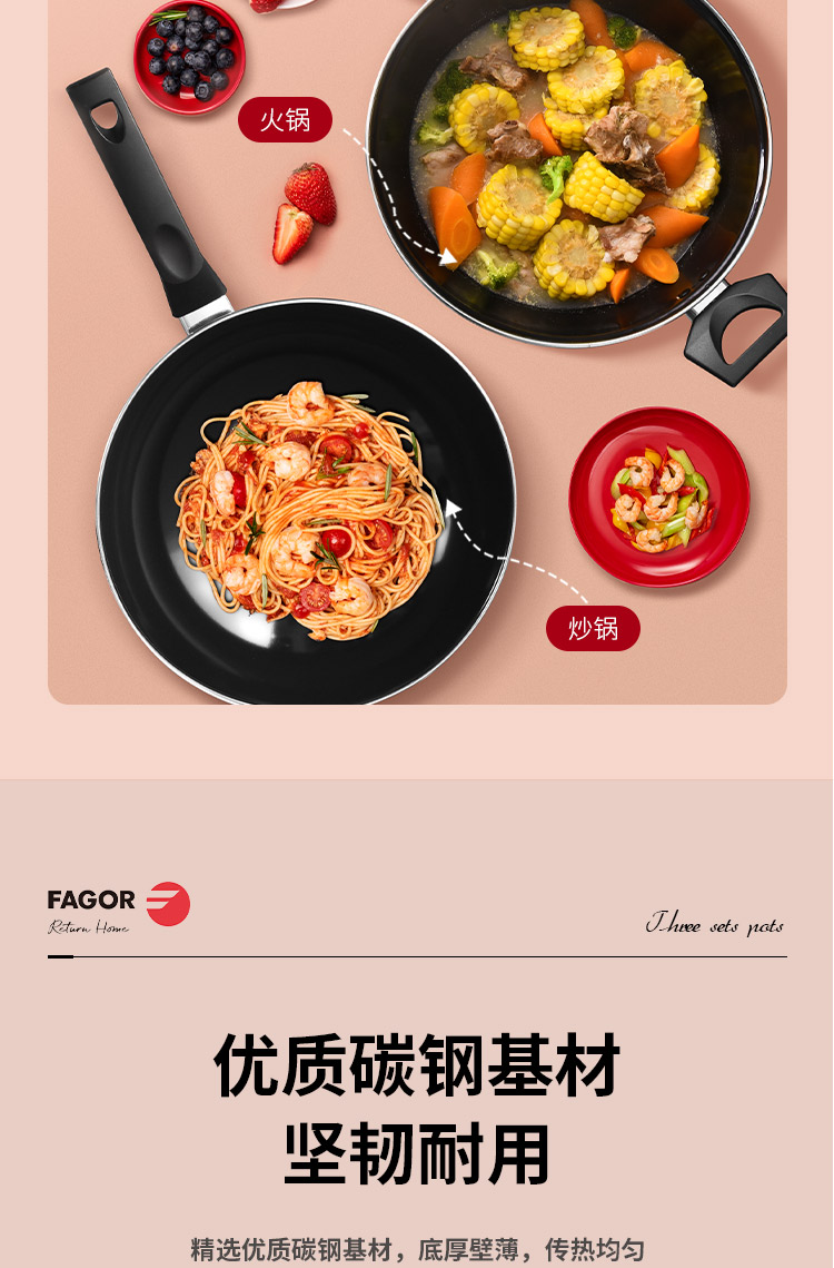 商品名称:FAGOR/法格红典系列珐琅锅锅具三件套FG-HHD03CHN
