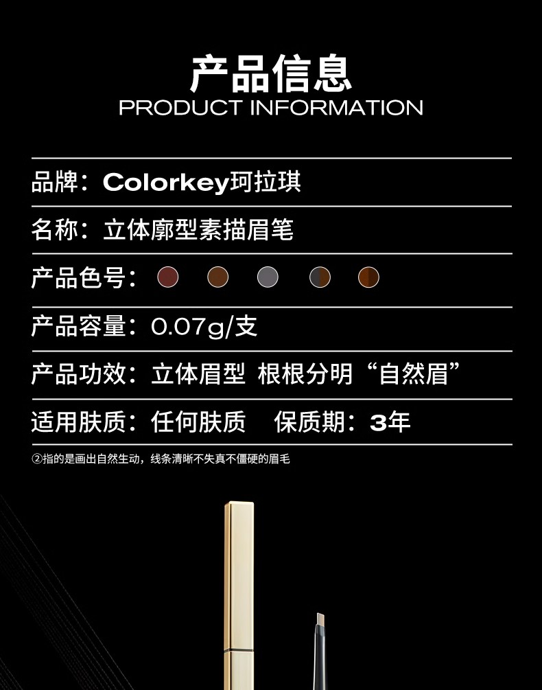 商品名称:COLORKEY/珂拉琪小金筷立体廓型素描眉笔0.07g*3支