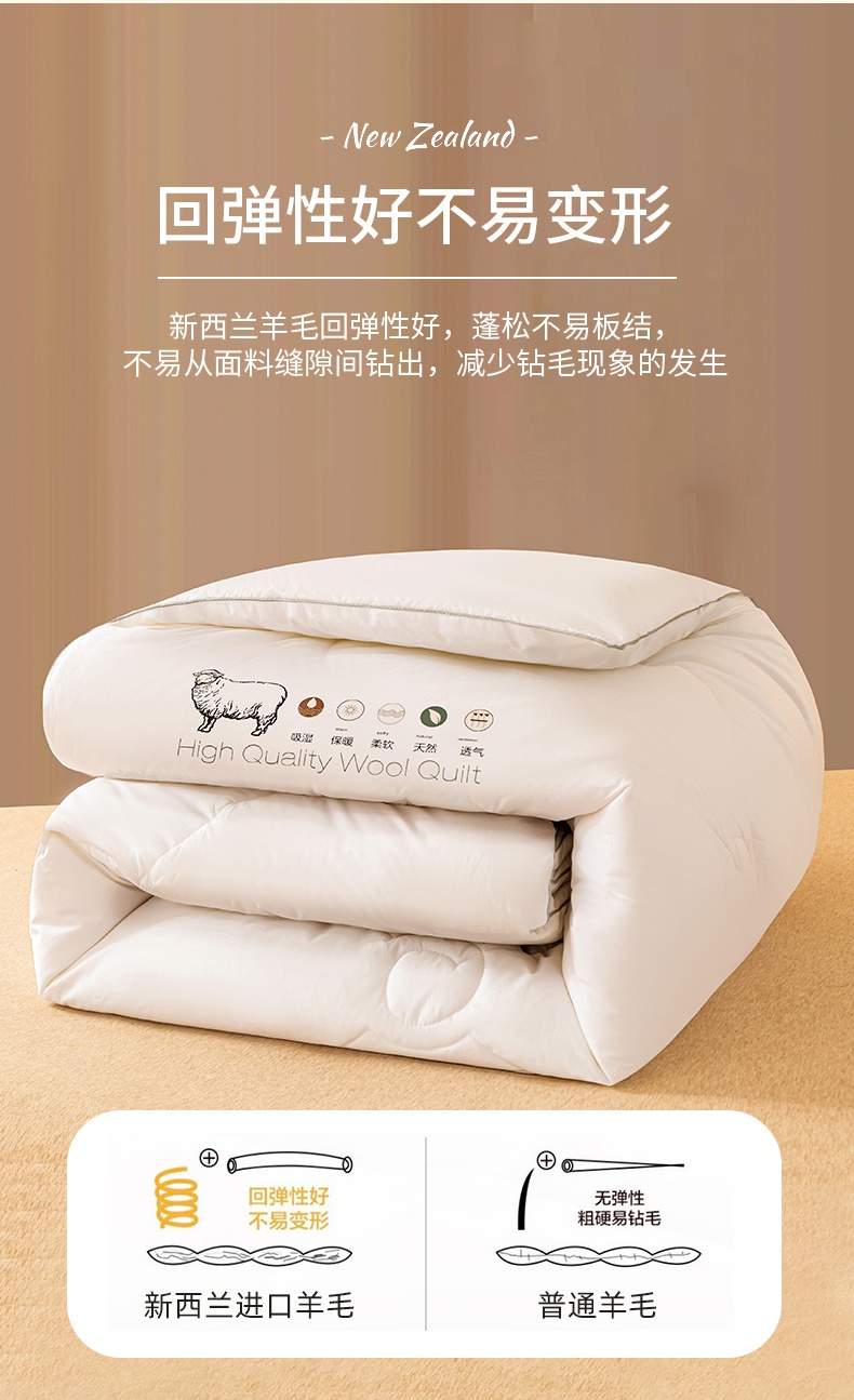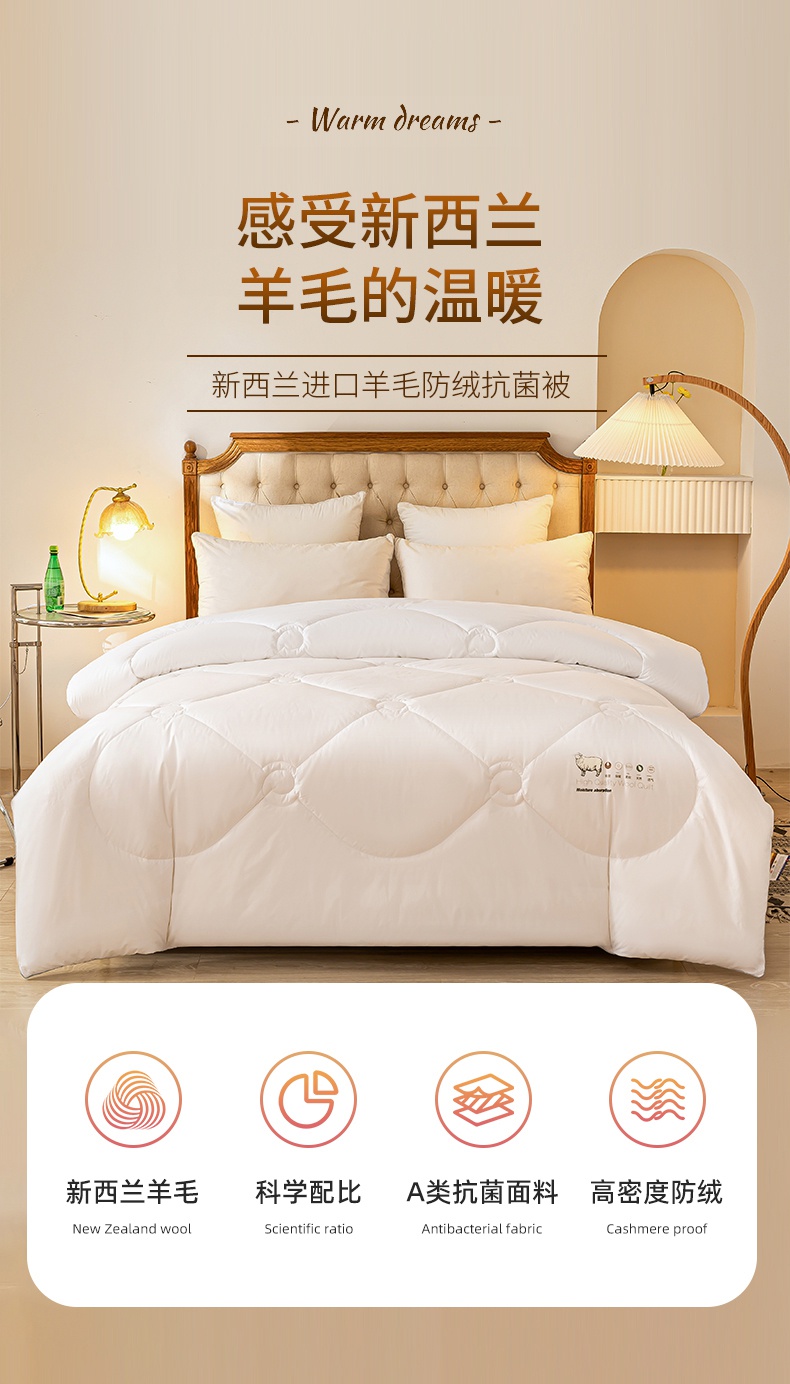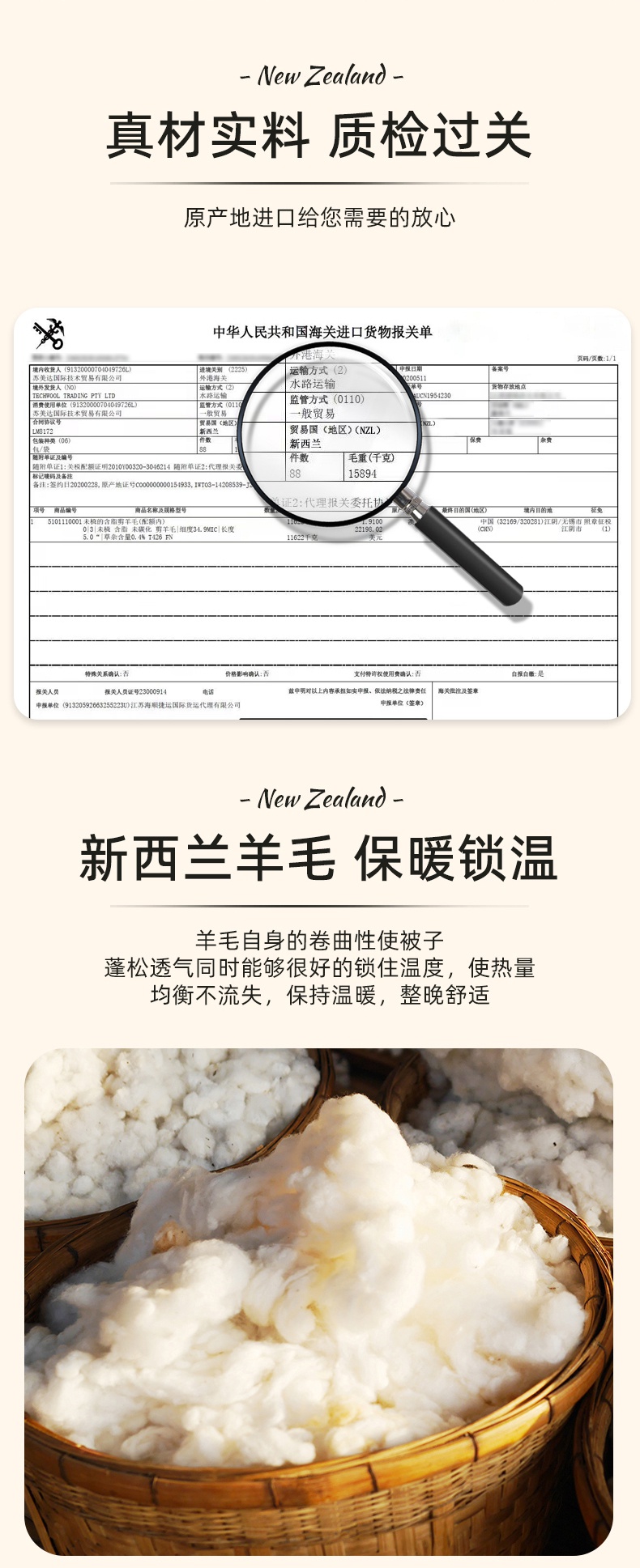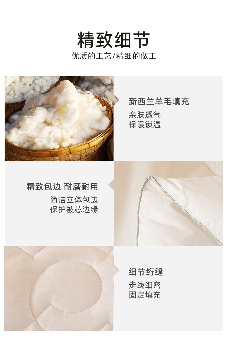 商品名称:(WS)GRACE/洁丽雅新西兰进口羊毛防绒抗菌被200*230cm 3300g