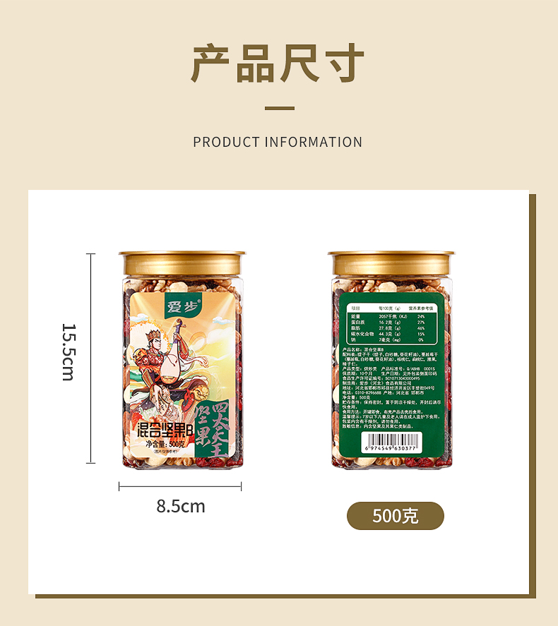 商品名称:aibu/爱步混合坚果B款罐装500g