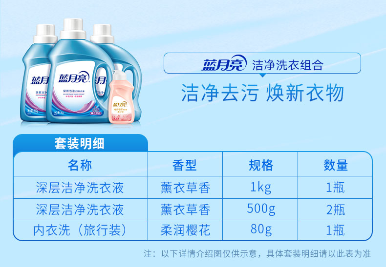 商品名称:蓝月亮薰衣草洁净洗衣液柔润樱花内衣专用洗衣液组合2080g 80001781
