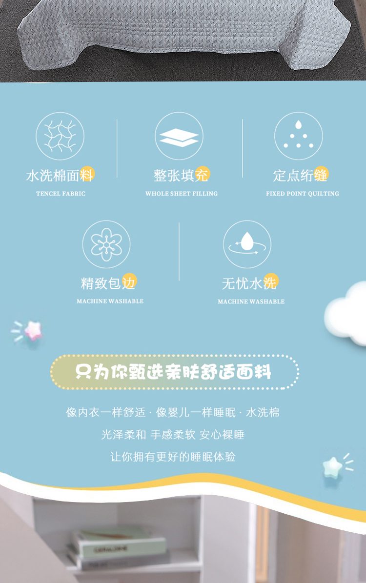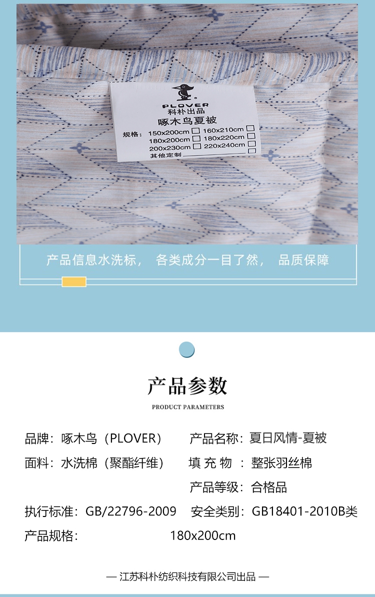 商品名称:PLOVER/啄木鸟科朴优品夏日风情水洗棉夏被-大180*200cm 900g