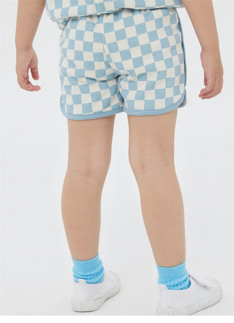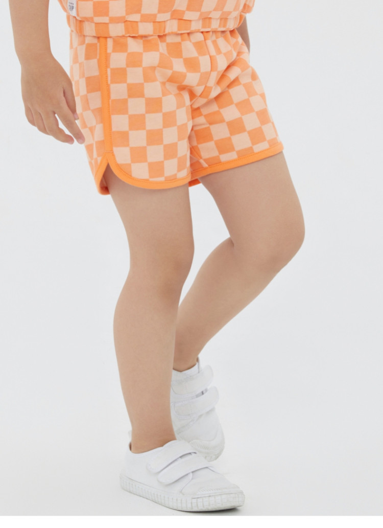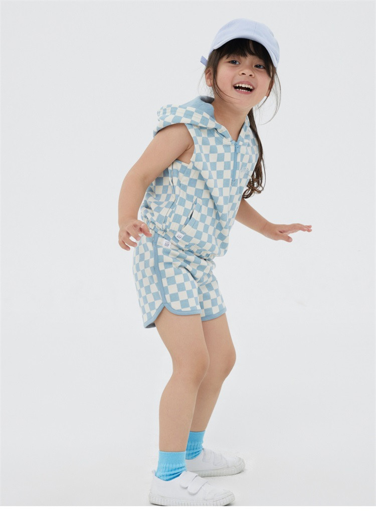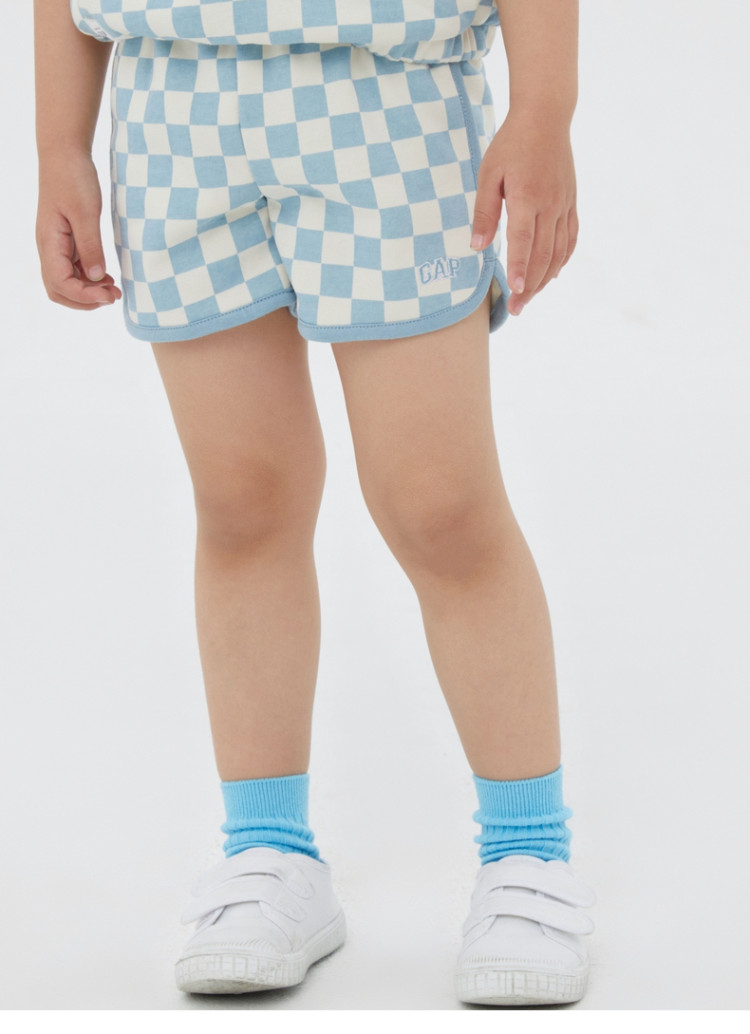 Gap女幼童LOGO薄款棋盘格运动短裤春秋款儿童装宽松卫裤402624 012570