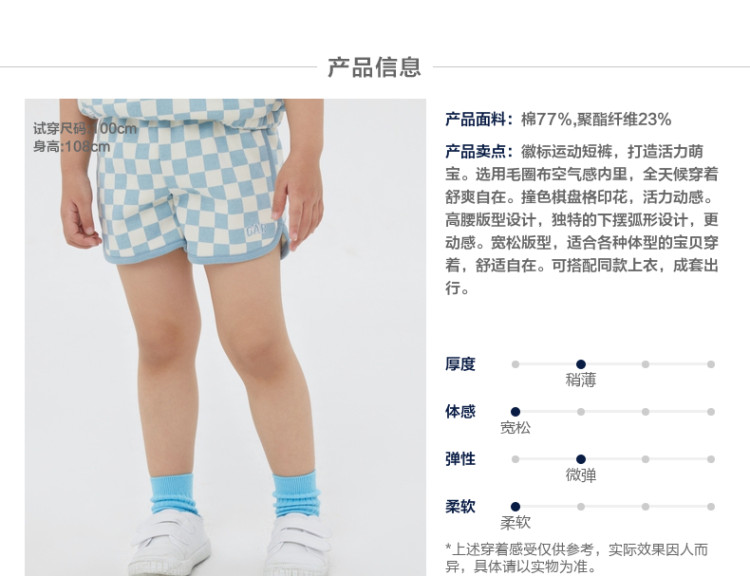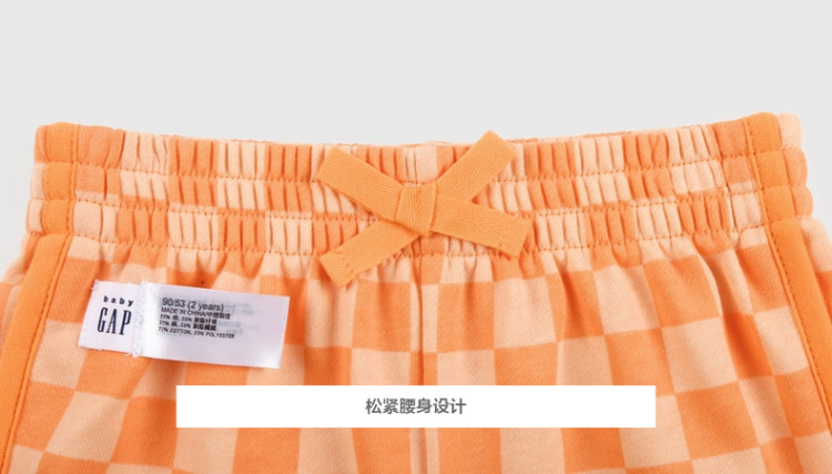 商品名称:Gap女幼童LOGO薄款棋盘格运动短裤春秋款儿童装宽松卫裤402624 012570