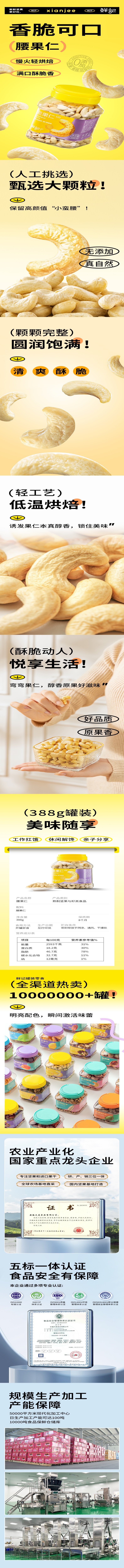 商品名称:xianjee/鲜记原味腰果仁388g*2罐