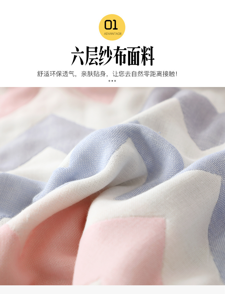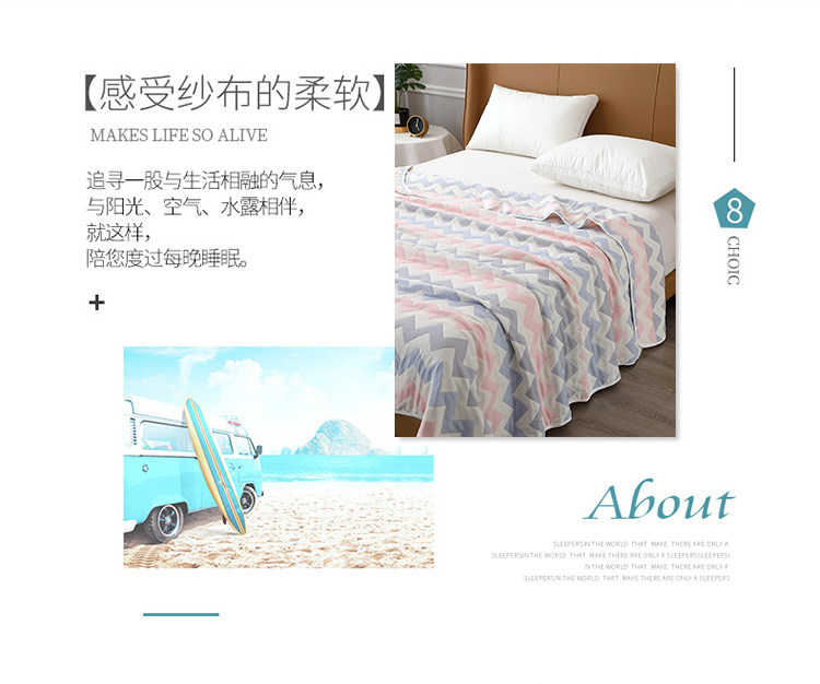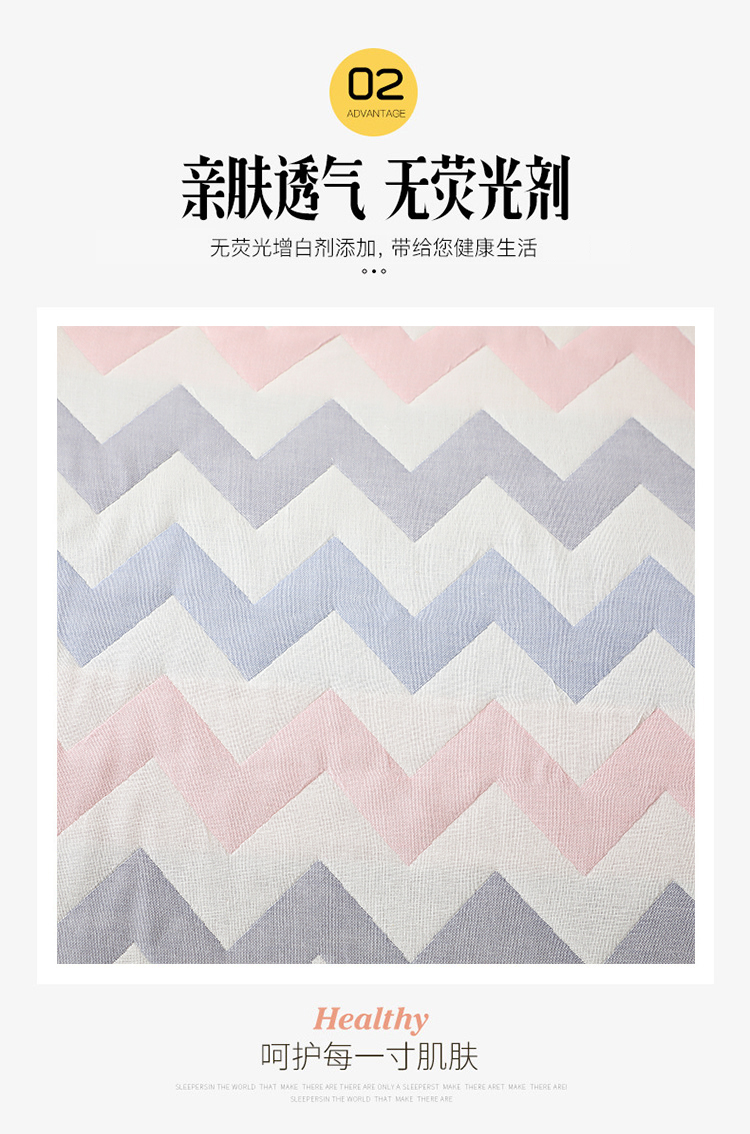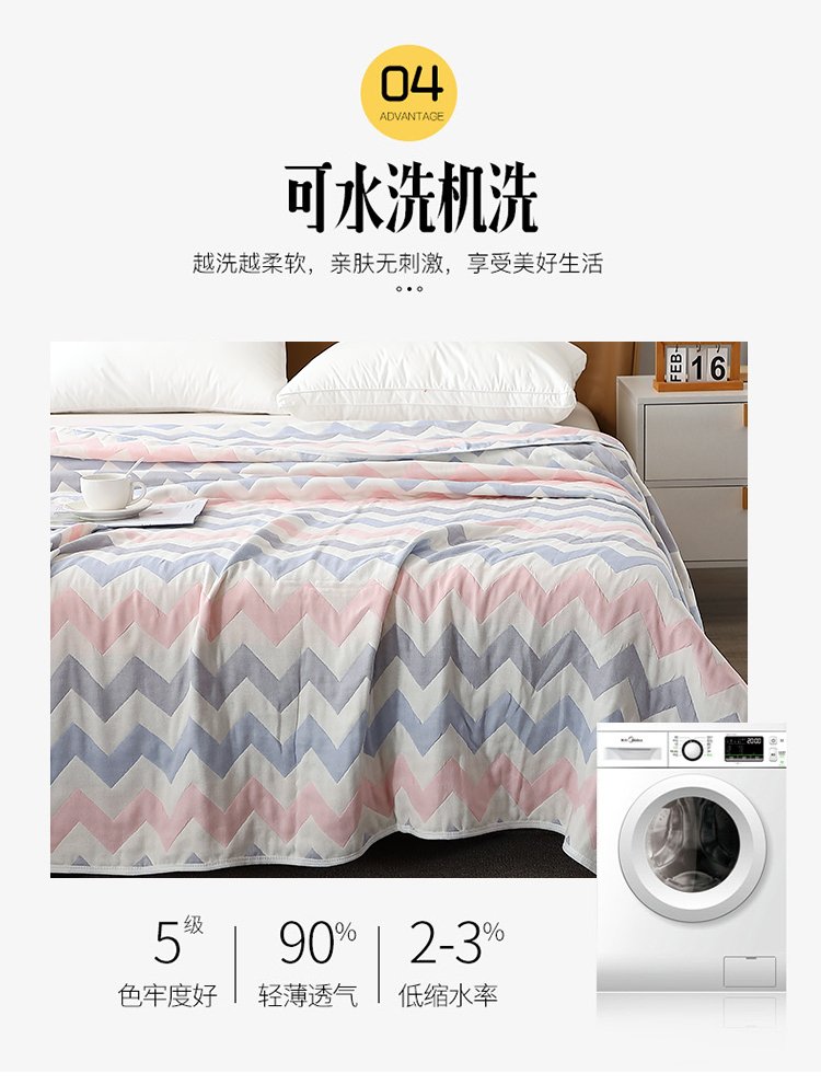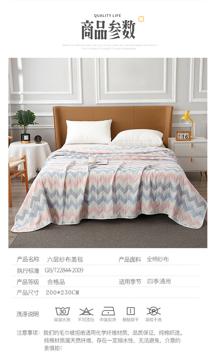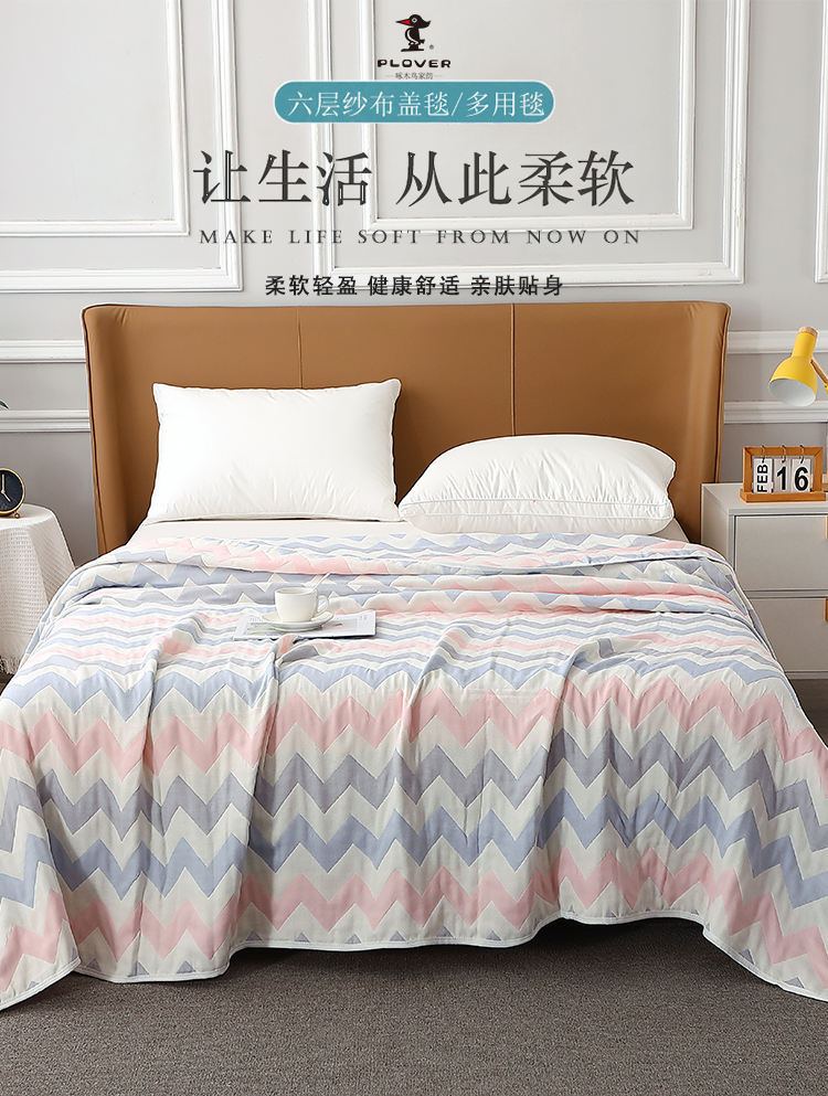 商品名称:PLOVER/啄木鸟条纹波浪六层纱毛巾被200*230cm 1500g