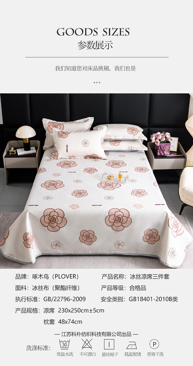 商品名称:PLOVER/啄木鸟漫花冰丝凉席三件套230x250cm
