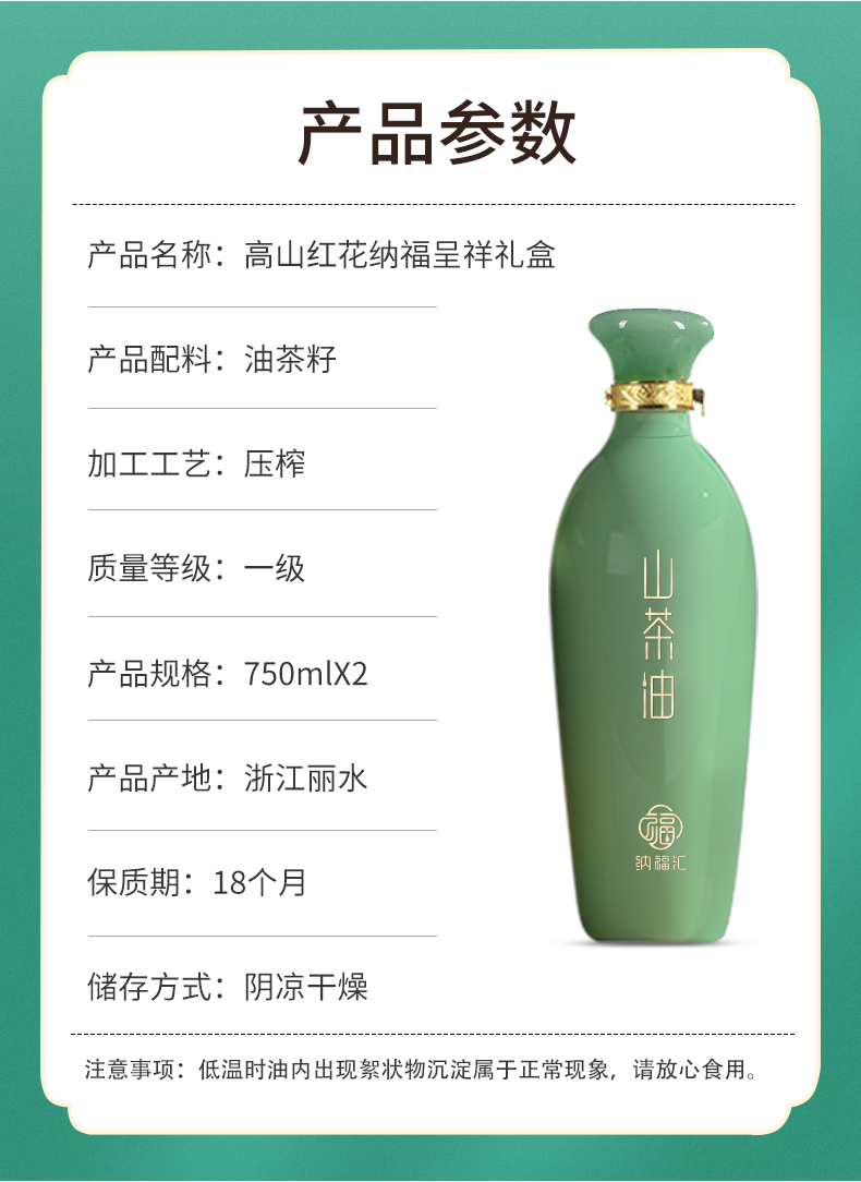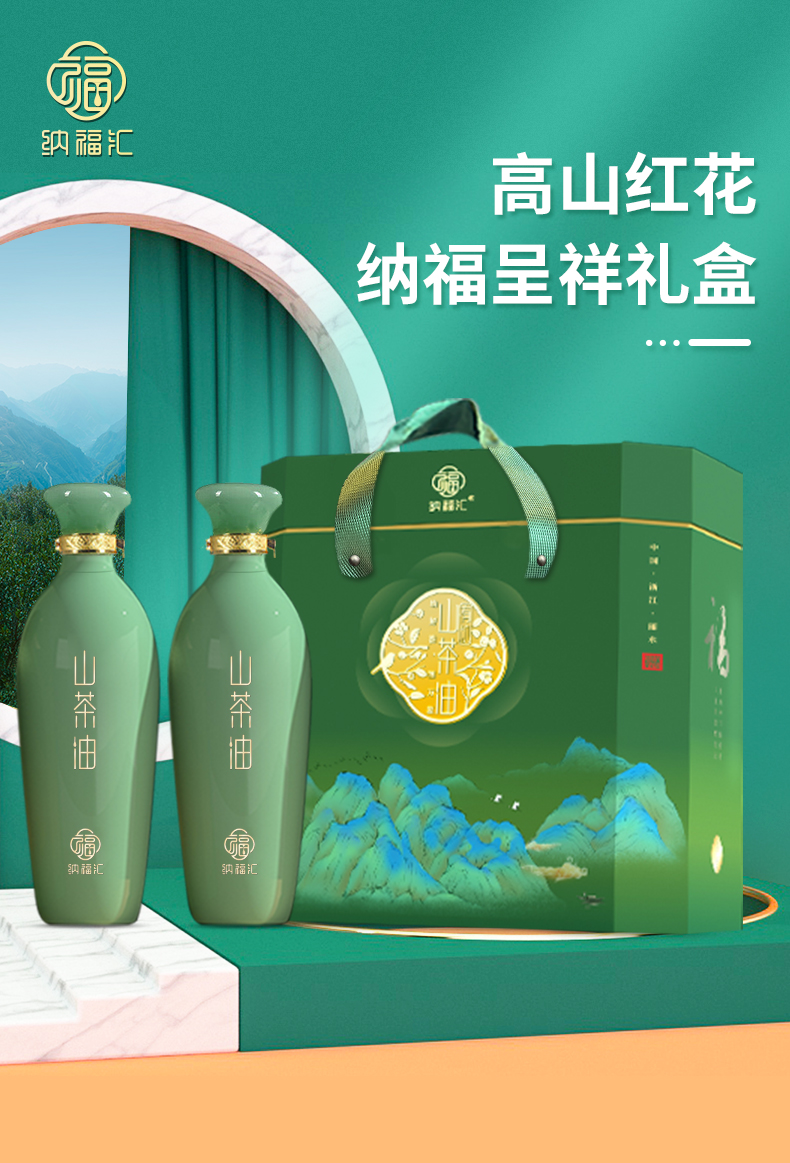 商品名称:纳福汇高山红花纳福呈祥山茶油礼盒750mlX2瓶