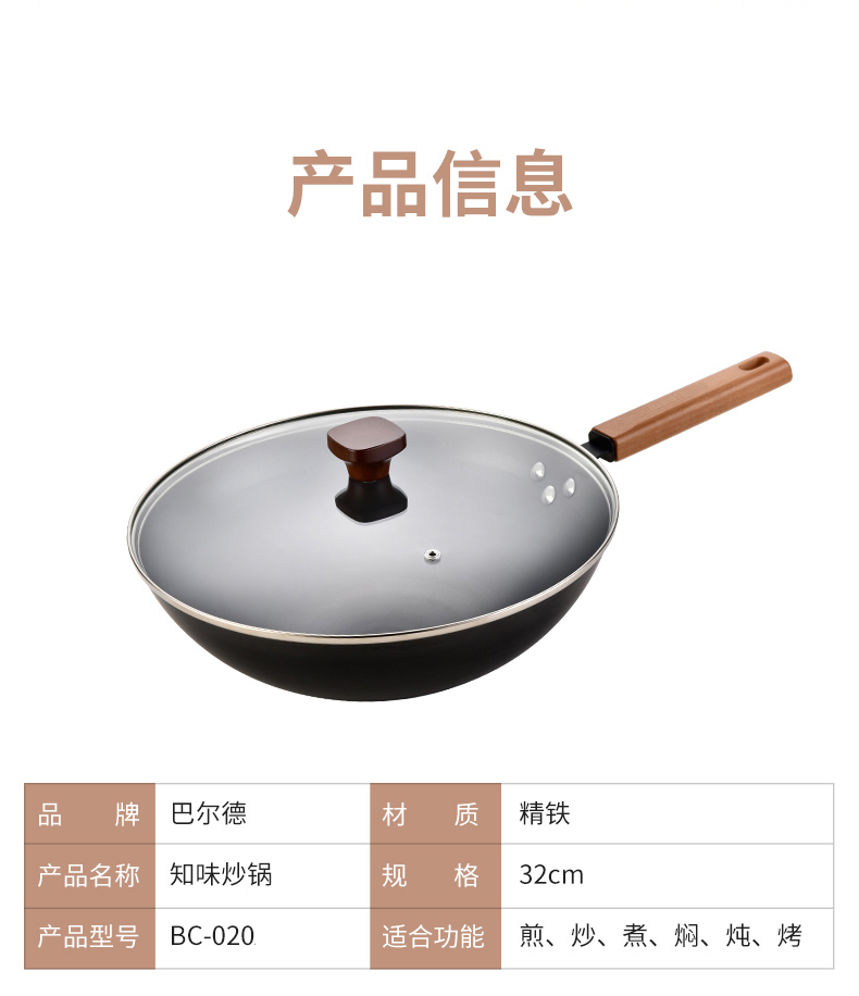 商品名称:(WS)TI-BRO/巴尔德32cm知味圆底炒锅BC-020