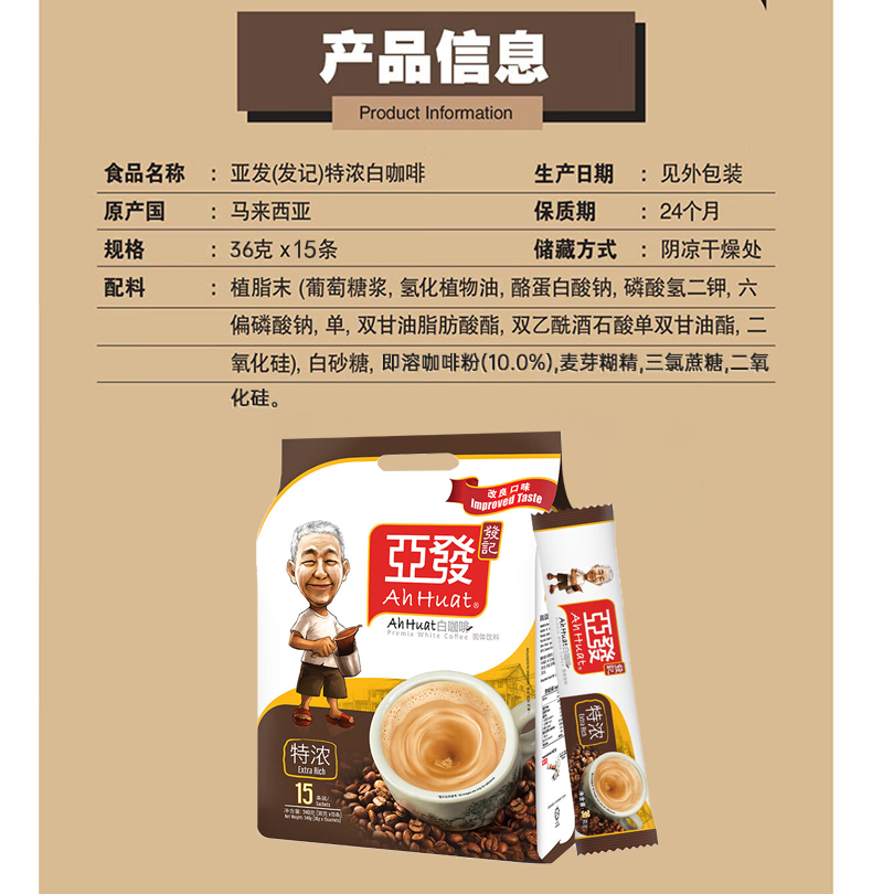 商品名称:亚发马来西亚进口特浓白咖啡540g*2袋