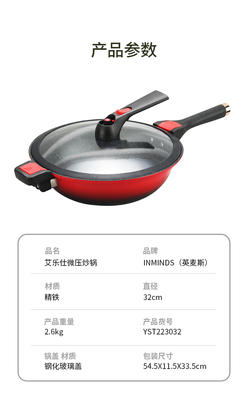 商品名称:INMINDS/英麦斯32cm艾乐仕微压炒锅YST223032