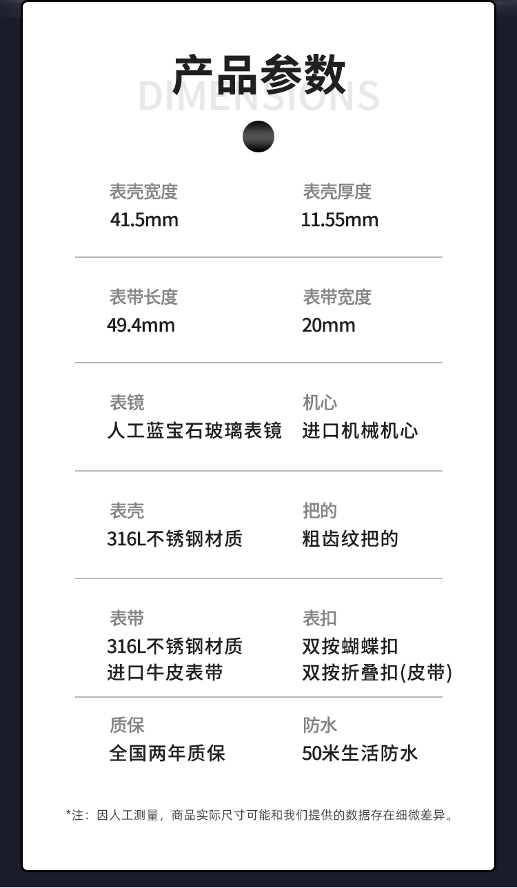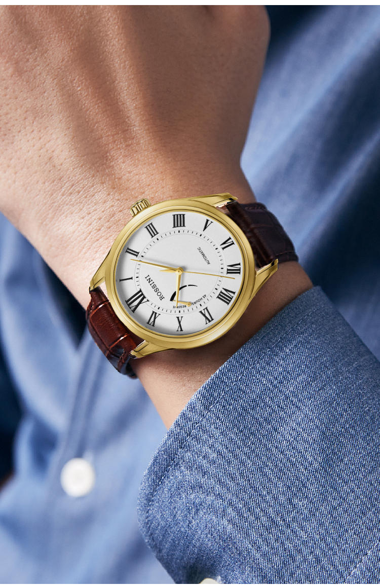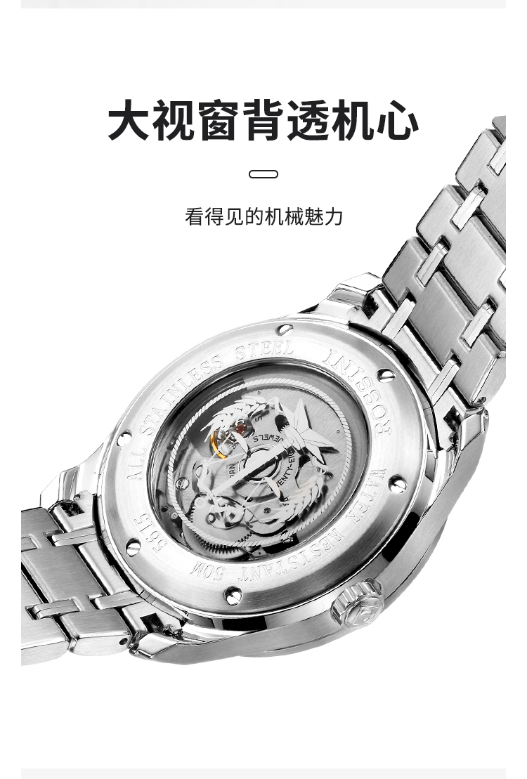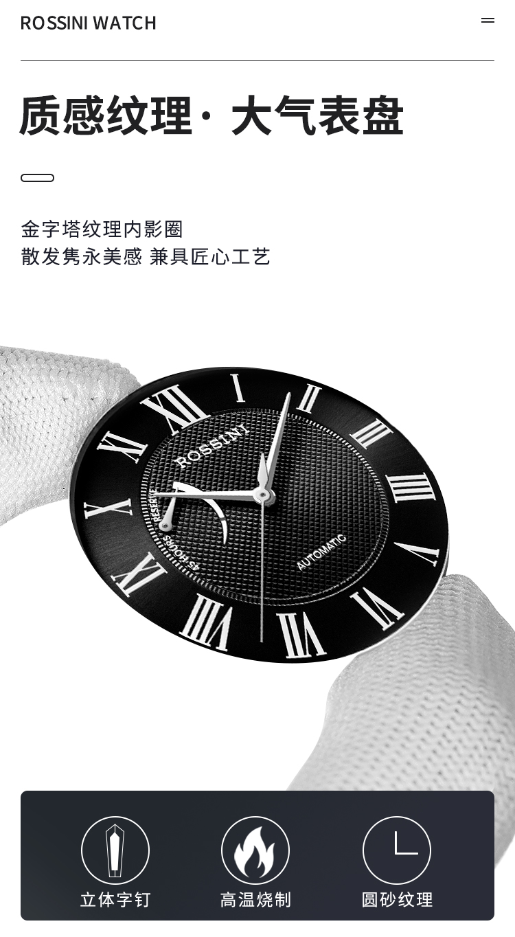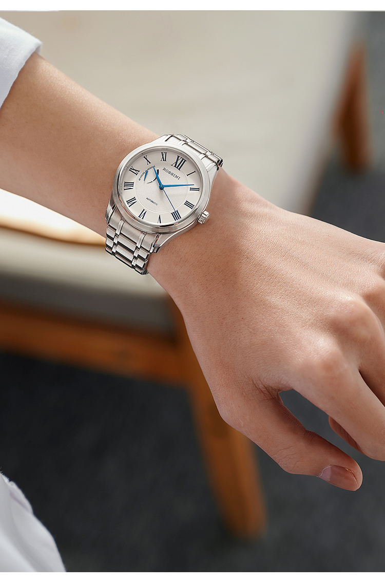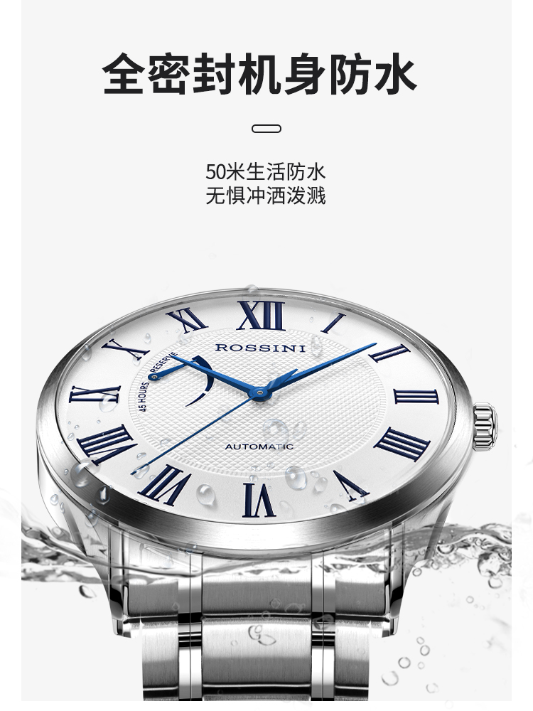 商品名称:Rossini罗西尼 启迪系列 机械手表商务黑盘钢带男表SJ5615W04B