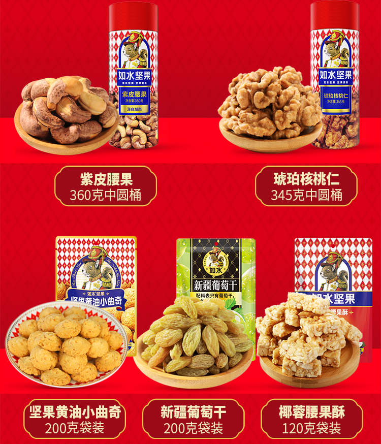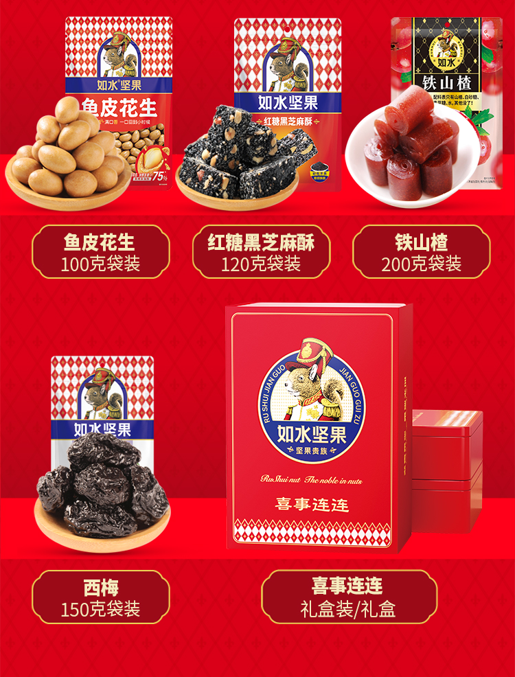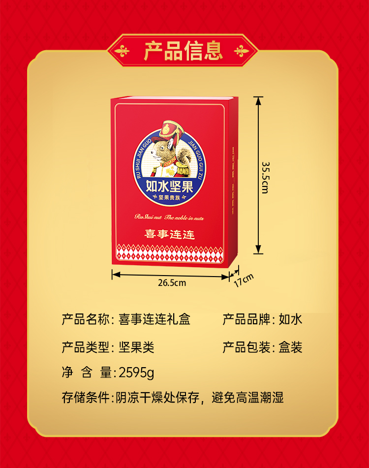 商品名称:如水喜事连连零食糕点坚果贵族礼盒2595g