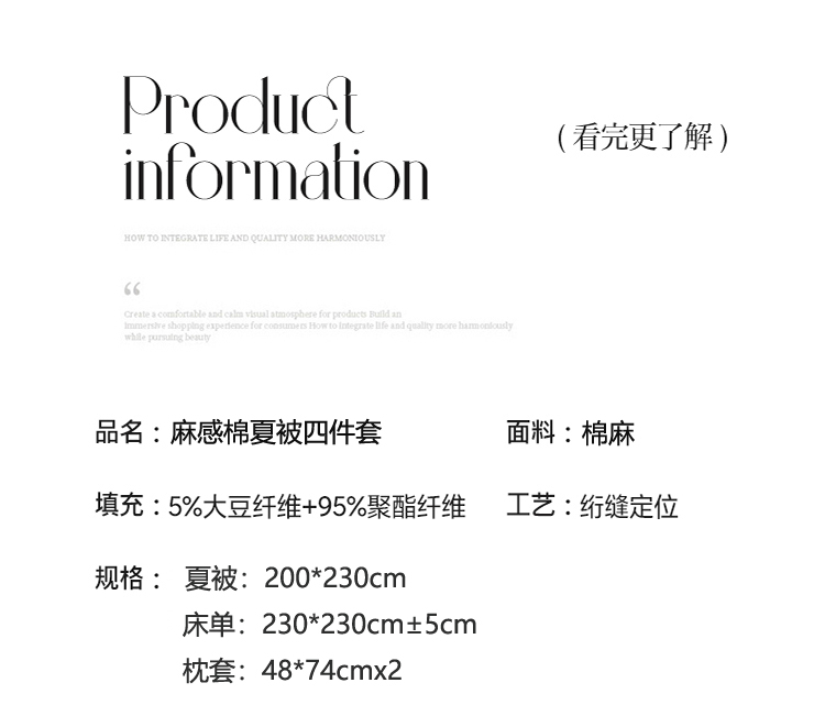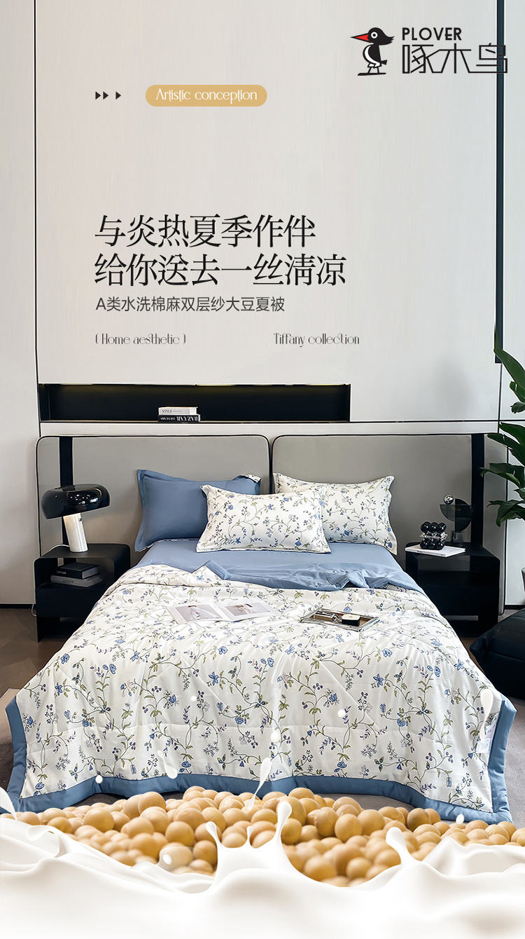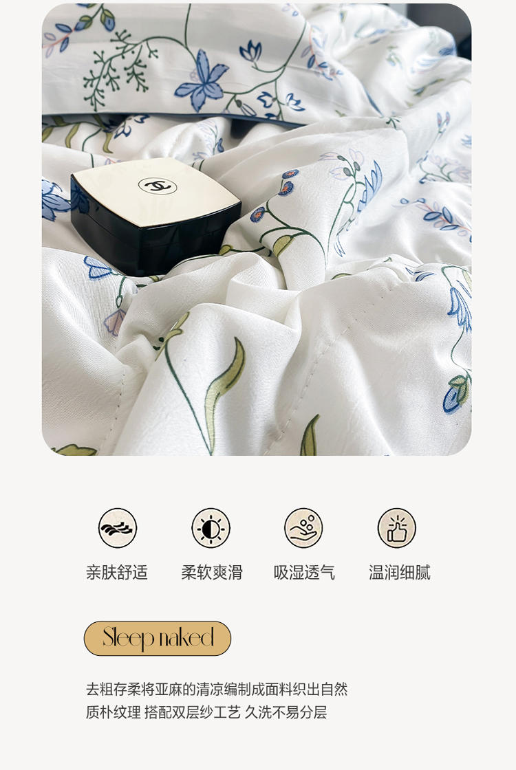 商品名称:PLOVER/啄木鸟夕颜麻感棉夏被四件套200*230cm