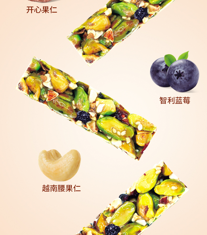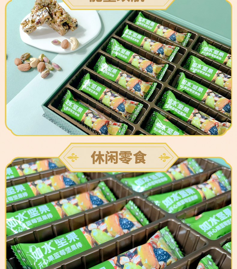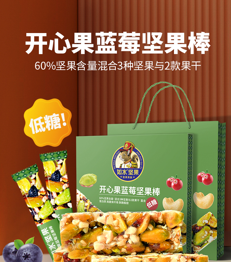 商品名称:如水低糖开心果蓝莓坚果棒礼盒300g