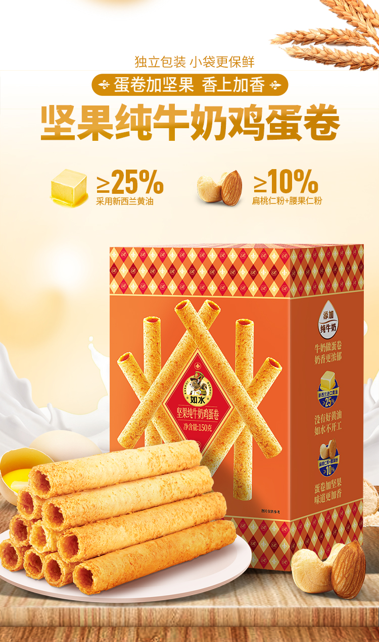 如水坚果纯牛奶鸡蛋卷150g*2盒
