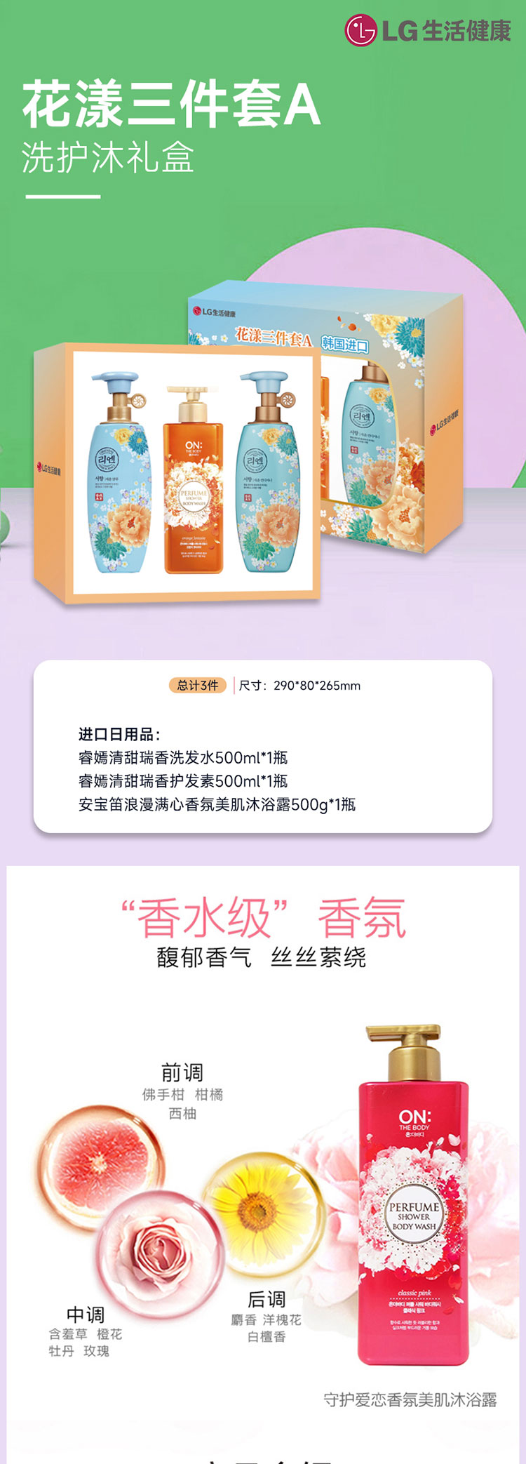 商品名称:LG生活健康花漾洗护沐三件套礼盒A款