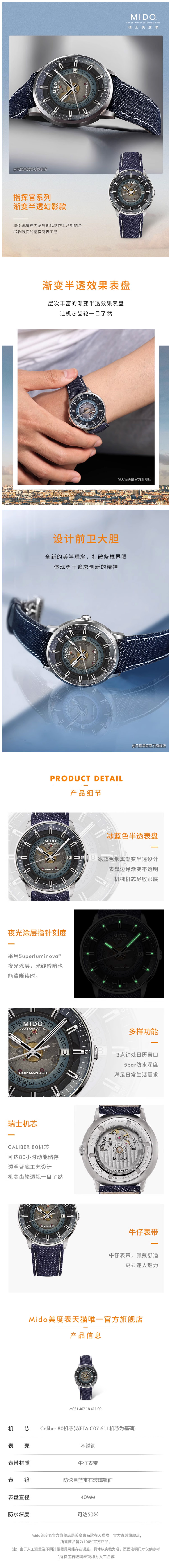 商品名称:MIDO美度 指挥官系列幻影渐变机械男士腕表 M021.407.18.411.00