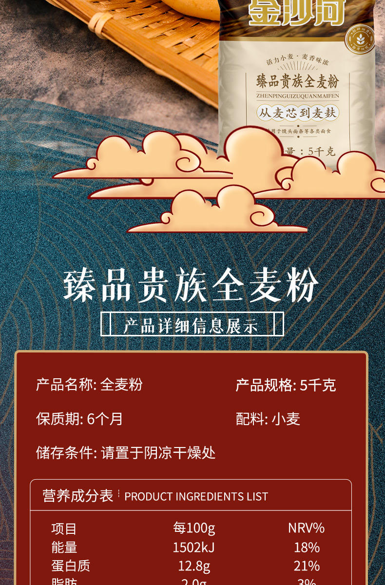 商品名称:金沙河臻品贵族全麦面粉5kg
