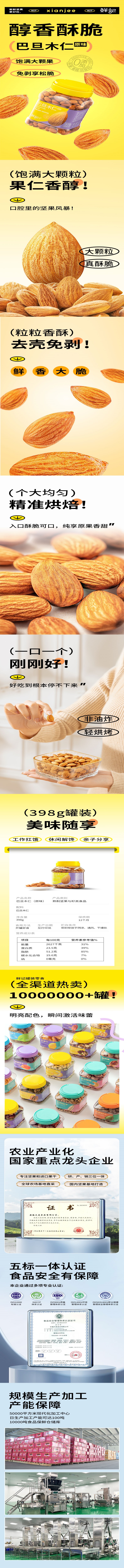 商品名称:xianjee/鲜记原味巴旦木仁398g*2罐