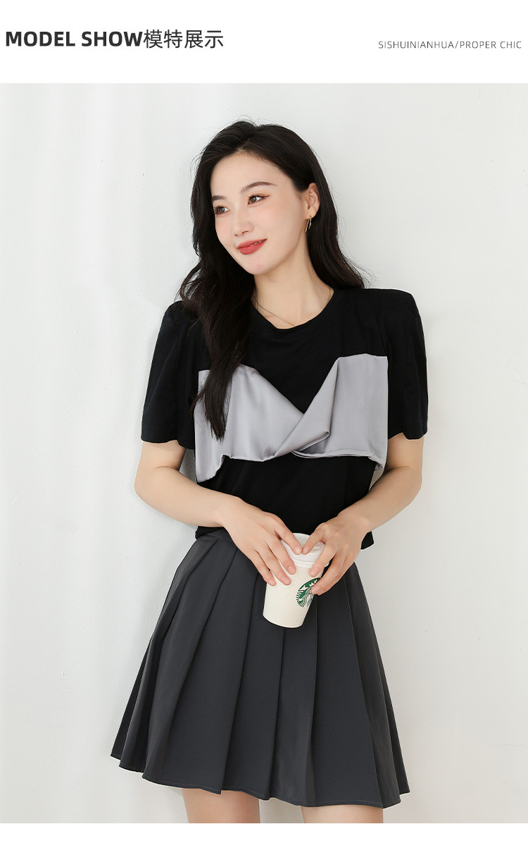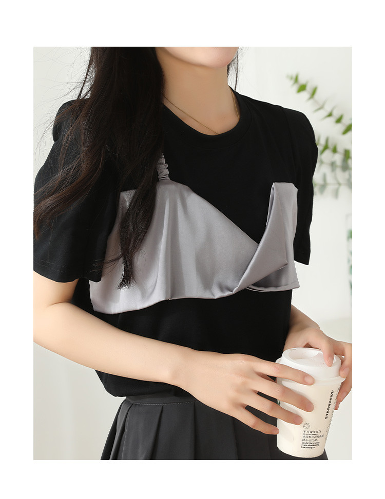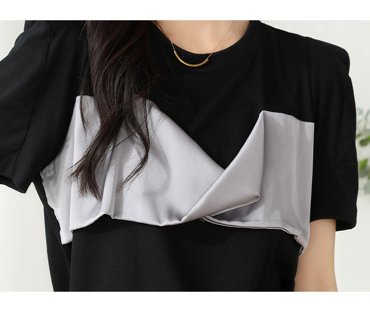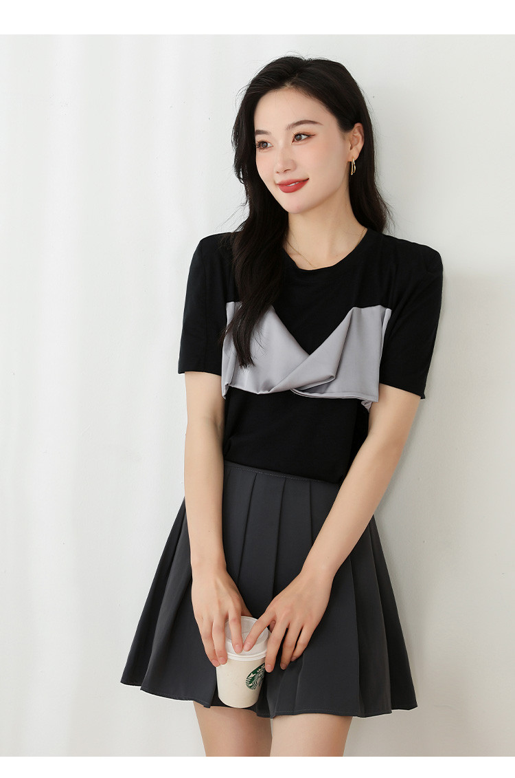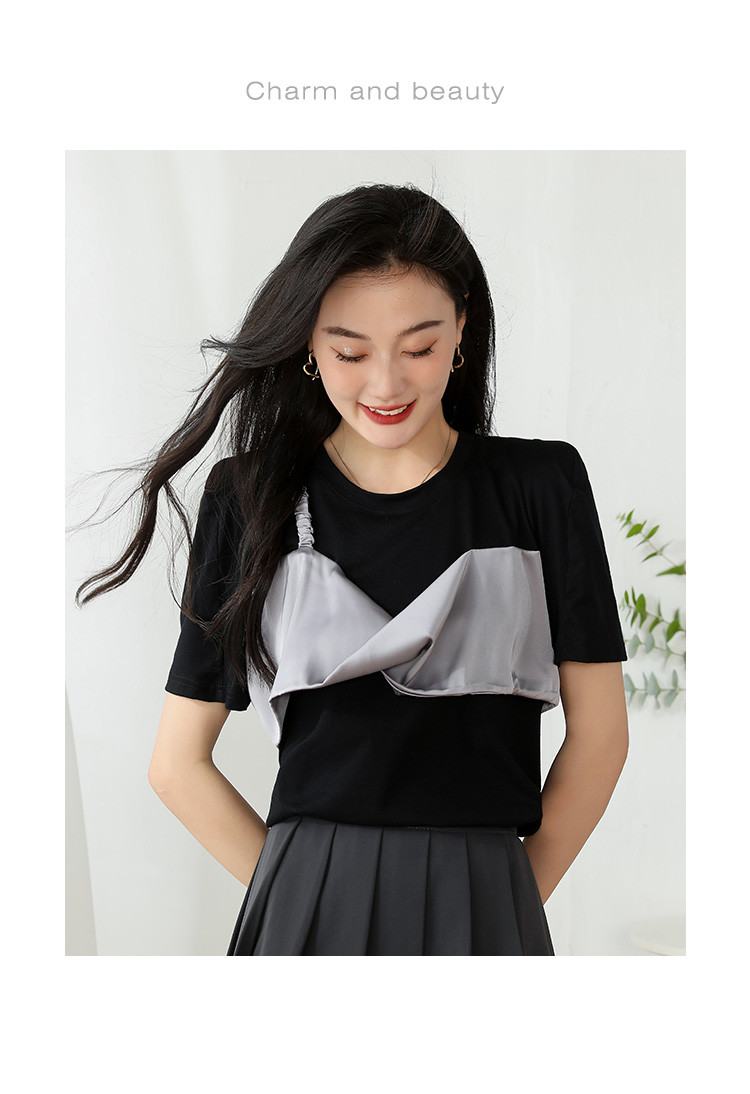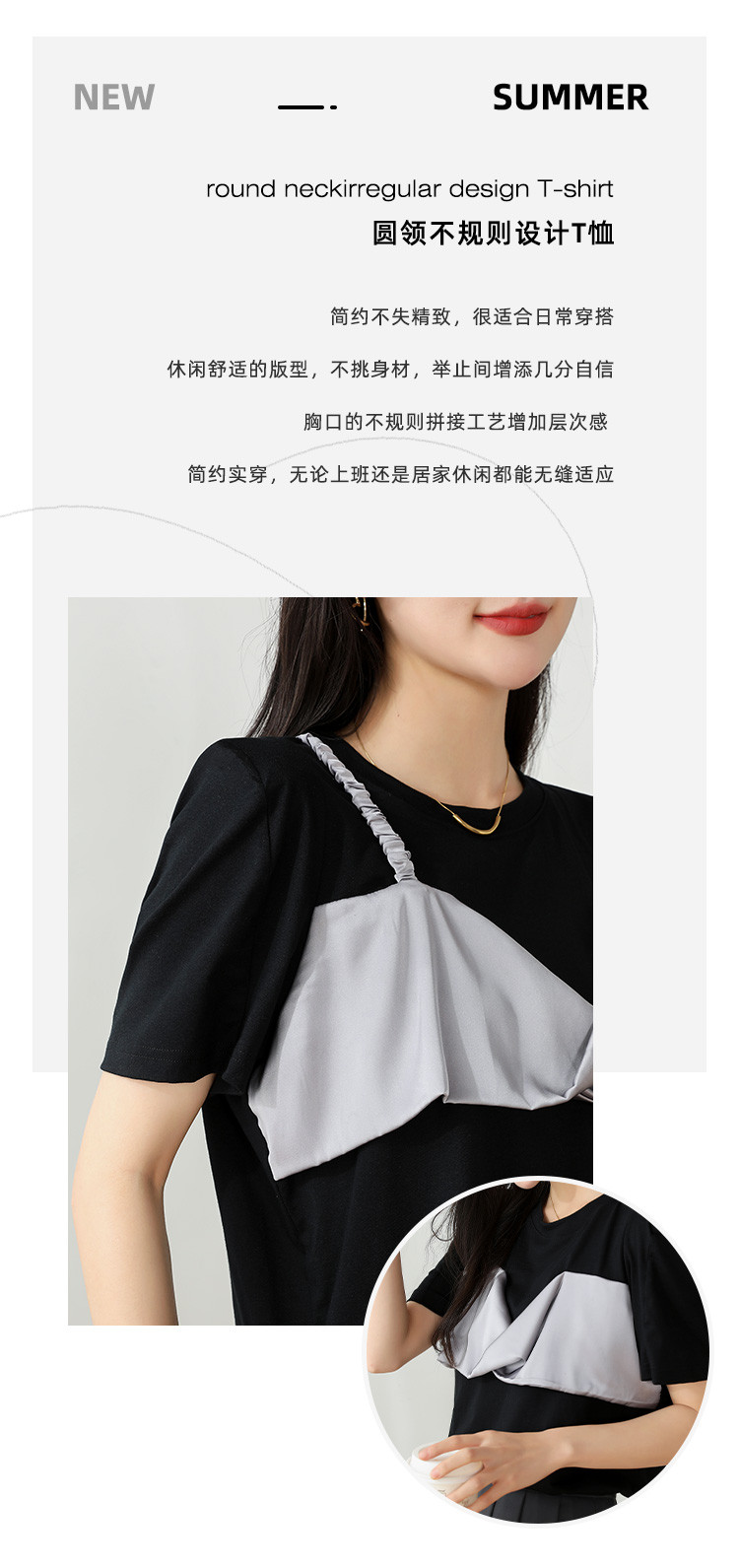 商品名称:扭结假两件短袖T恤女潮港风夏季薄款不规则设计感小众上衣女 014168