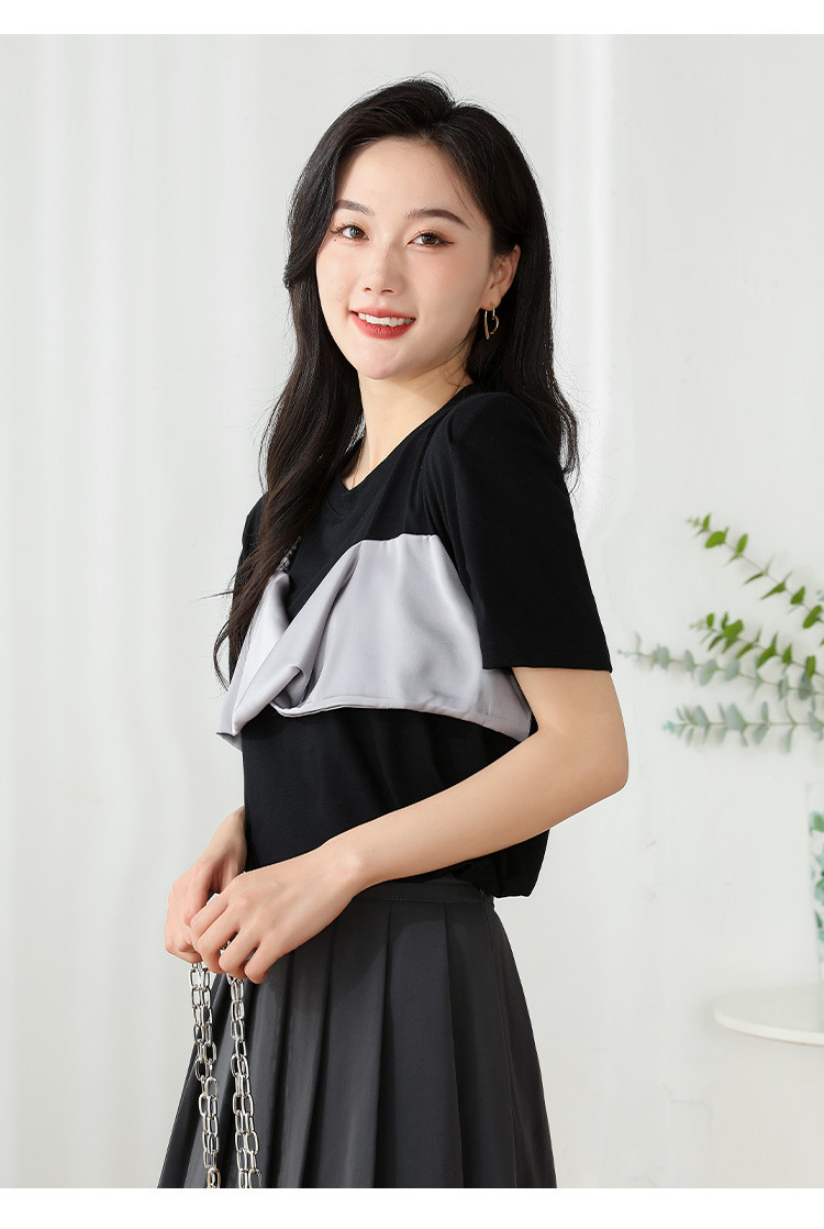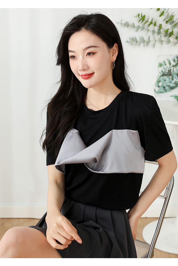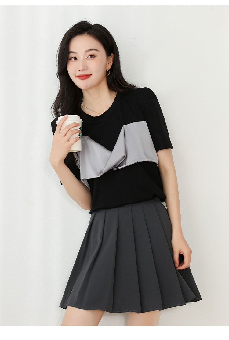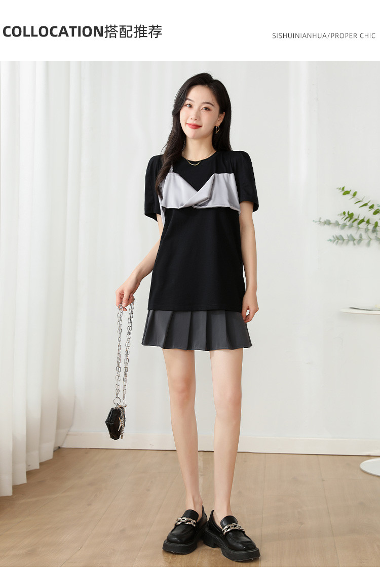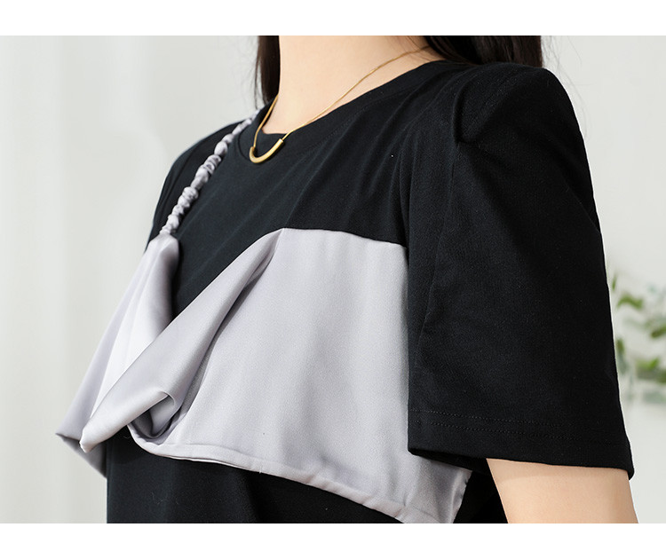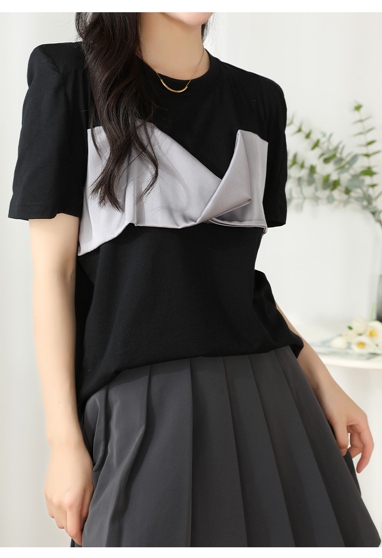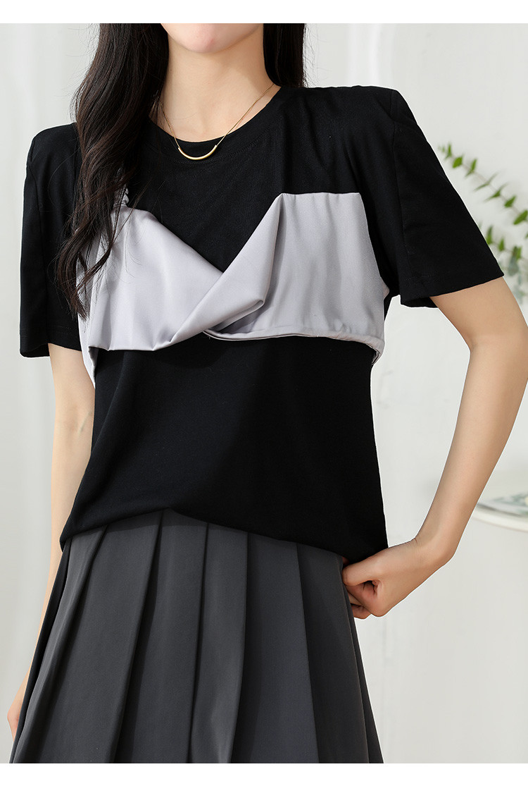 商品名称:扭结假两件短袖T恤女潮港风夏季薄款不规则设计感小众上衣女 014168
